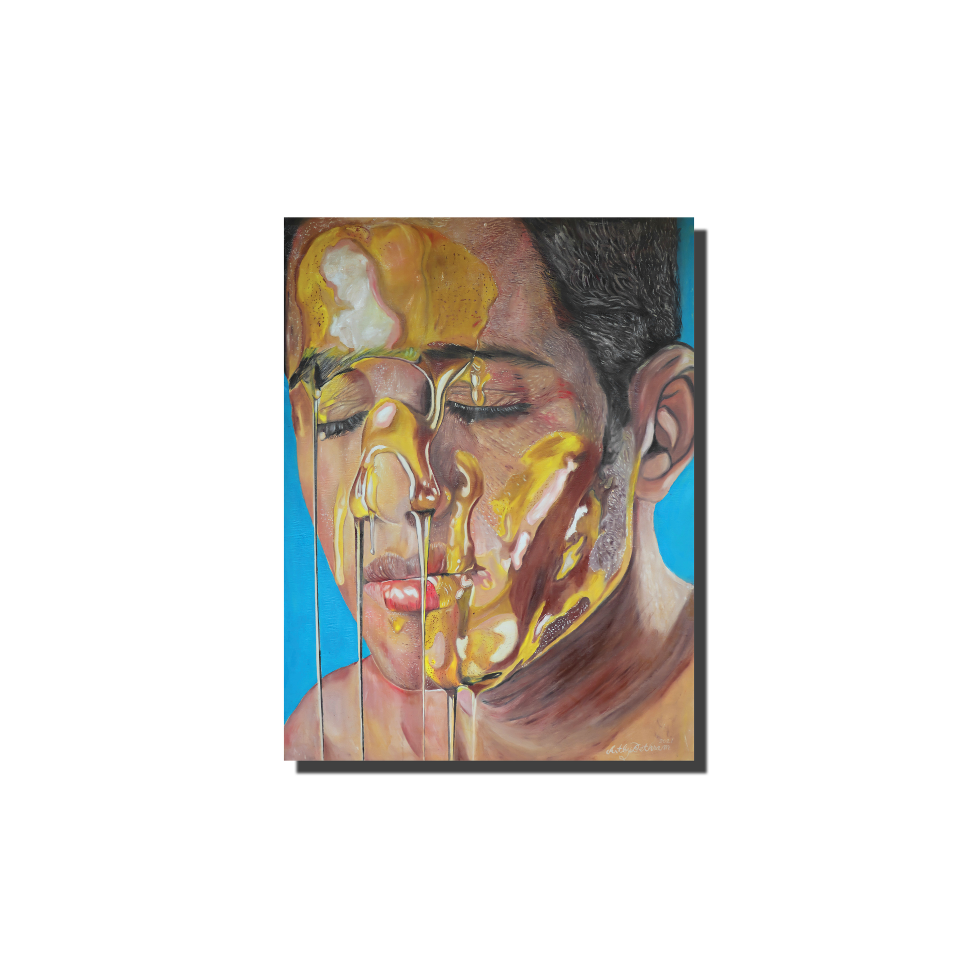 The painting depicts a person suffering from mental health issues such as schizophrenia, insanity, depression, or other mental illnesses. His own mind eats him apart as a result of his sad face with a dripping honey. This is how I've felt at times throughout my life. I wanted to create a visual representation of my inner thoughts and pain. Also, Last year, I was also in a motorcycle accident. My face filled with blood. Rather than painting blood. I use honey to remind people that life isn't always easy, but we must appreciate it. Honey flow is unpredictably variable. It's the same with life. We have no way of knowing what will happen to us the next day. As a result, one must accept it and live in the "Now". Also , It's called aflutter because it's nervously excited of what's going to happen next.