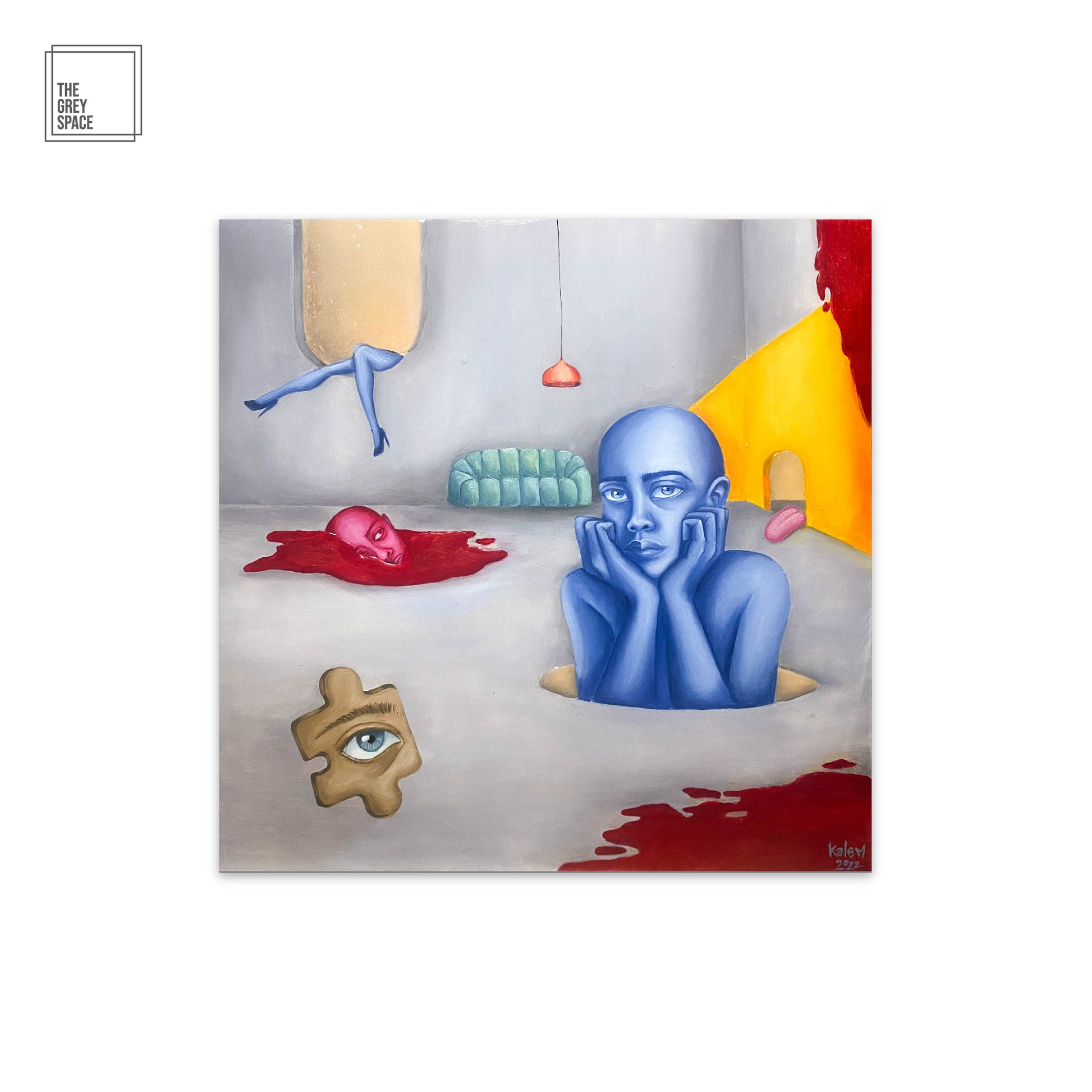 "Kalem is an Artist/ Architect with a natural passion for painting scenarios based on personal views. The bald blue naked character symbolizes her in the experience but shows boldness, neutrality, and equality as she often tackles issues of gender inequality.
