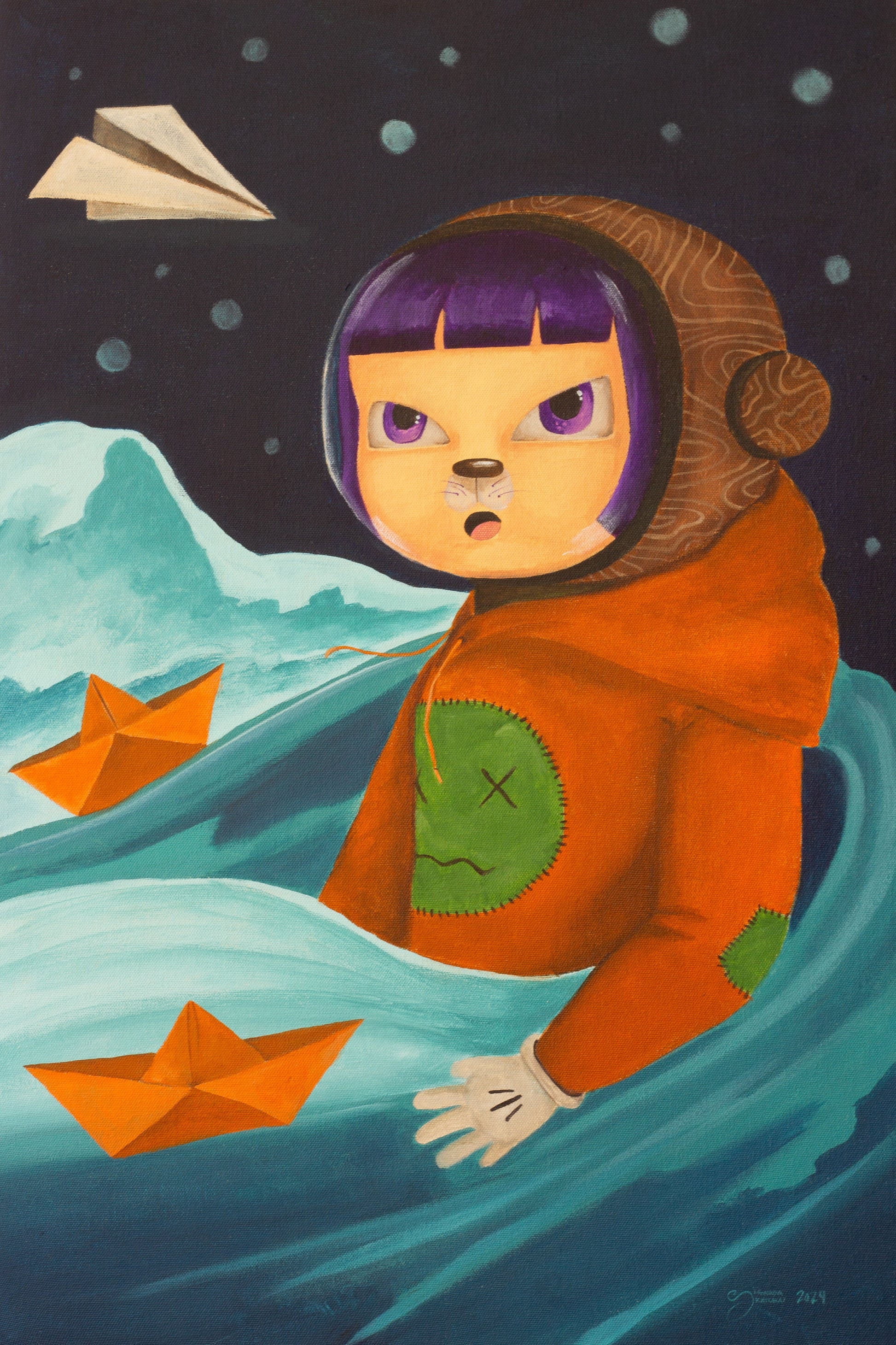 Sigwada Knicolai is a popsurrealist artist and a tattoo artist who personifies moods and emotions stemming from her bipolar disorder through expressive characters. Her primary aim is to convey a unique perspective on the world, inspiring hope for a better life despite difficulties through whimsical artwork. While occasionally delving into social commentary and other themes, Knicolai's main focus remains shedding light on mental health issues. Her characters serve as an extension of herself, reflecting personal experiences and interpretations. While acrylic paints serve as the primary medium, Knicolai often explores various other media to further express her artistic vision.
