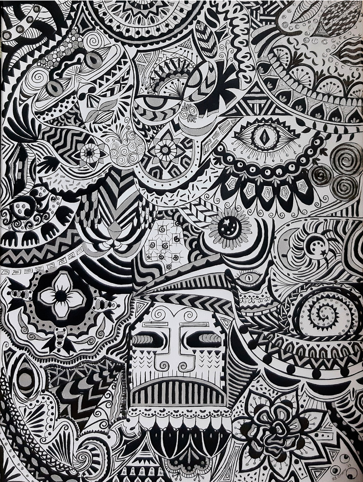 This abstract painting depicts the intricacies of the human mind and conciousness. That even in the void or emptiness, there is still a crucible of creation. Sometimes we have to wash away the unecessary trapness of the human mind to create something remarkable.