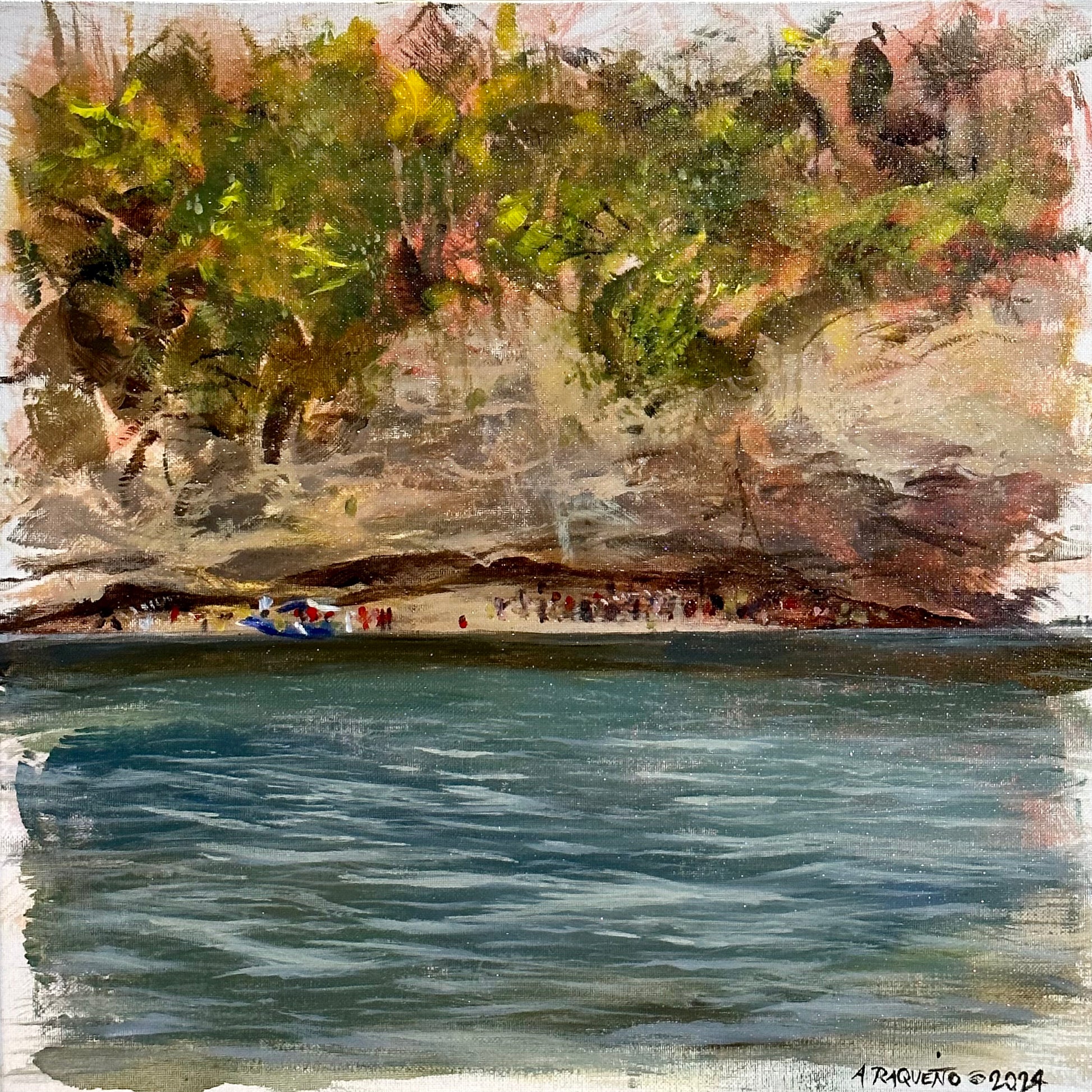 Are we approaching the shore, or are we departing from it? Are we returning to a place of comfort, or are we venturing into the unknown? What are getaways? What lies beyond?Albert Raqueño is a painter and illustrator based in Manila, Philippines. Driven by themes of longing, intimacy, togetherness, and sentimentality, he specializes in live portraits completed within minutes, as well as painted landscapes. His work primarily features people with whom he has personal interactions and places imbued with fond memories. Raqueño's art captures the essence of human connection and the depth of personal experience, making each piece a testament to the beauty of shared moments and spaces.