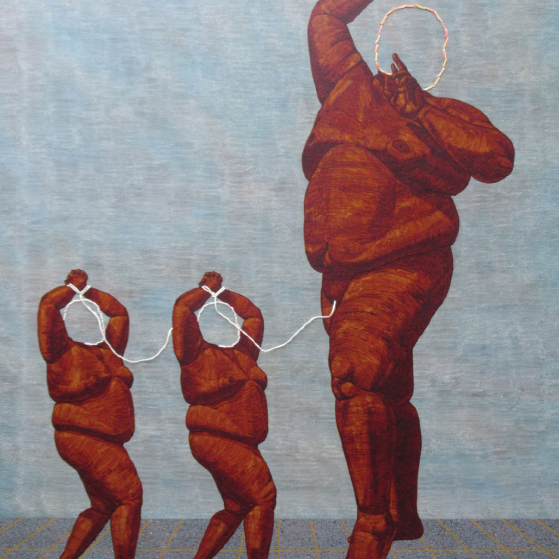 Bishop Eats PawnAcrylic, Blood, and Thread on Canvas