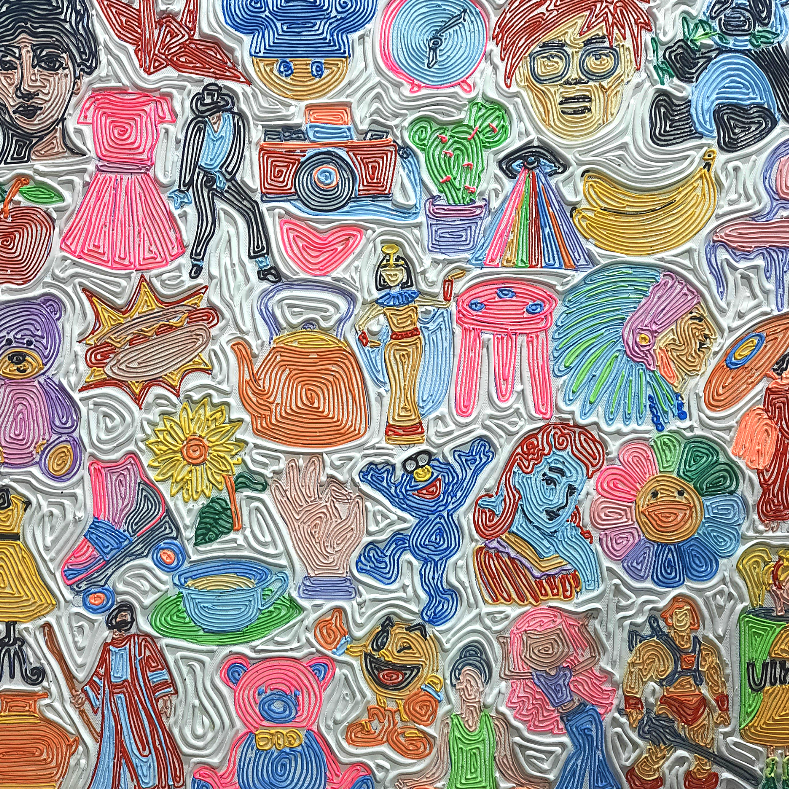 Nicole Asares is a visual artist who focuses mainly on continuous textured lines and casts of various figurative characters. Her passion in painting grew from basic lines into incorporating textured outlines of figures in random drawings. Having participated in over 30 group shows.