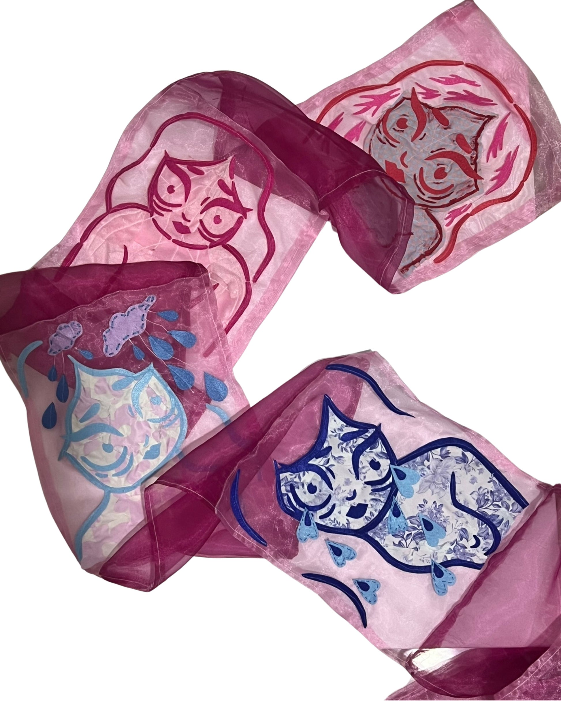 Mixed Media (Acrylic, textile cutouts, and thread on organza fabric)