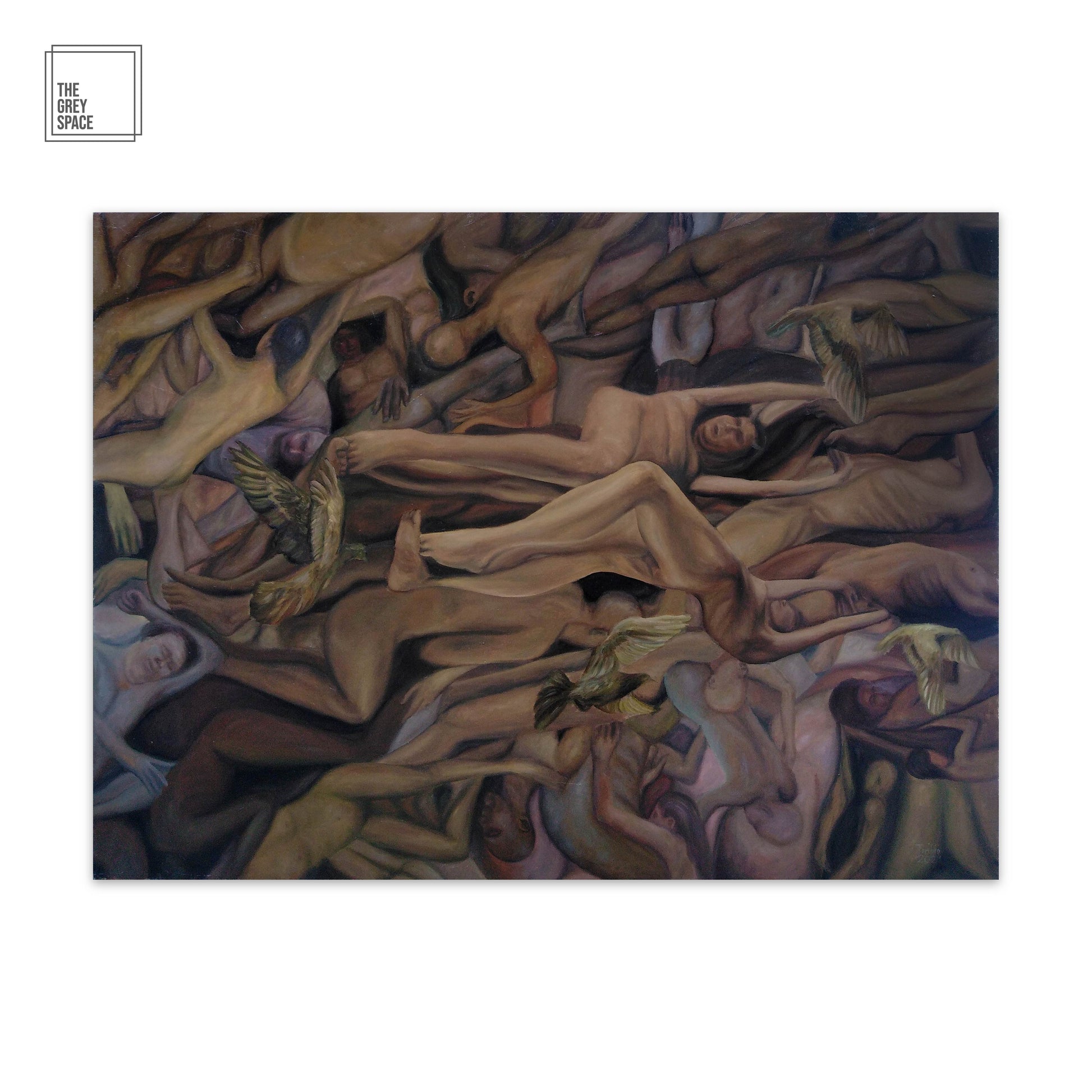 Kyle Toribio, This is a story of holding on and helping. Oftentimes, we need help and support from people. But what if, they could lead us to our downfall instead? a self-taught figurative painter in Davao del Norte, reckons human skin tones as abstract. His body of works can be seen as a collection of human figures. The process of his paintings were influenced by the old masters in classical learning approach in painting. He takes into consideration the layering of paints to achieve different degrees of skin tone values to unveil human form's aesthetic.