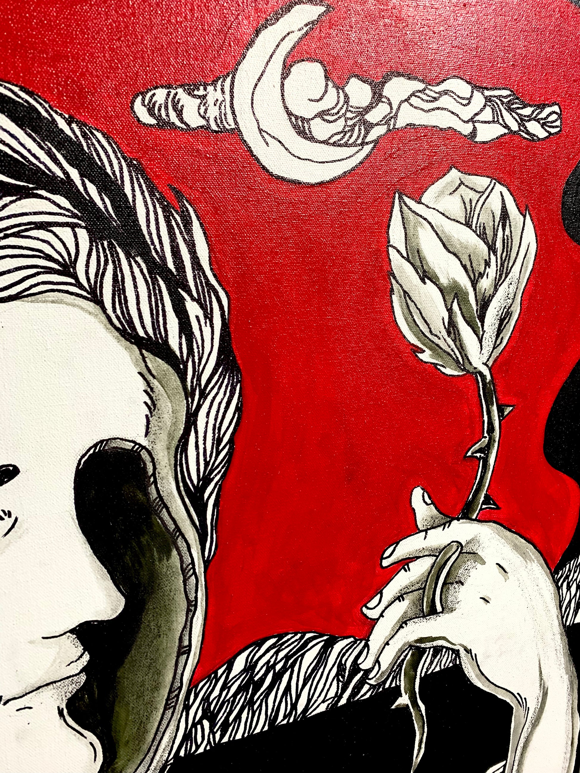 Aries Balderama is an Art Director working in an Advertising agency, and during free time he engaged in doing art, like painting. His medium is acrylic and mixed media. As a husband and father of two he look for inspirations in daily life, struggles, pain and journey in life. Just continue the battle.