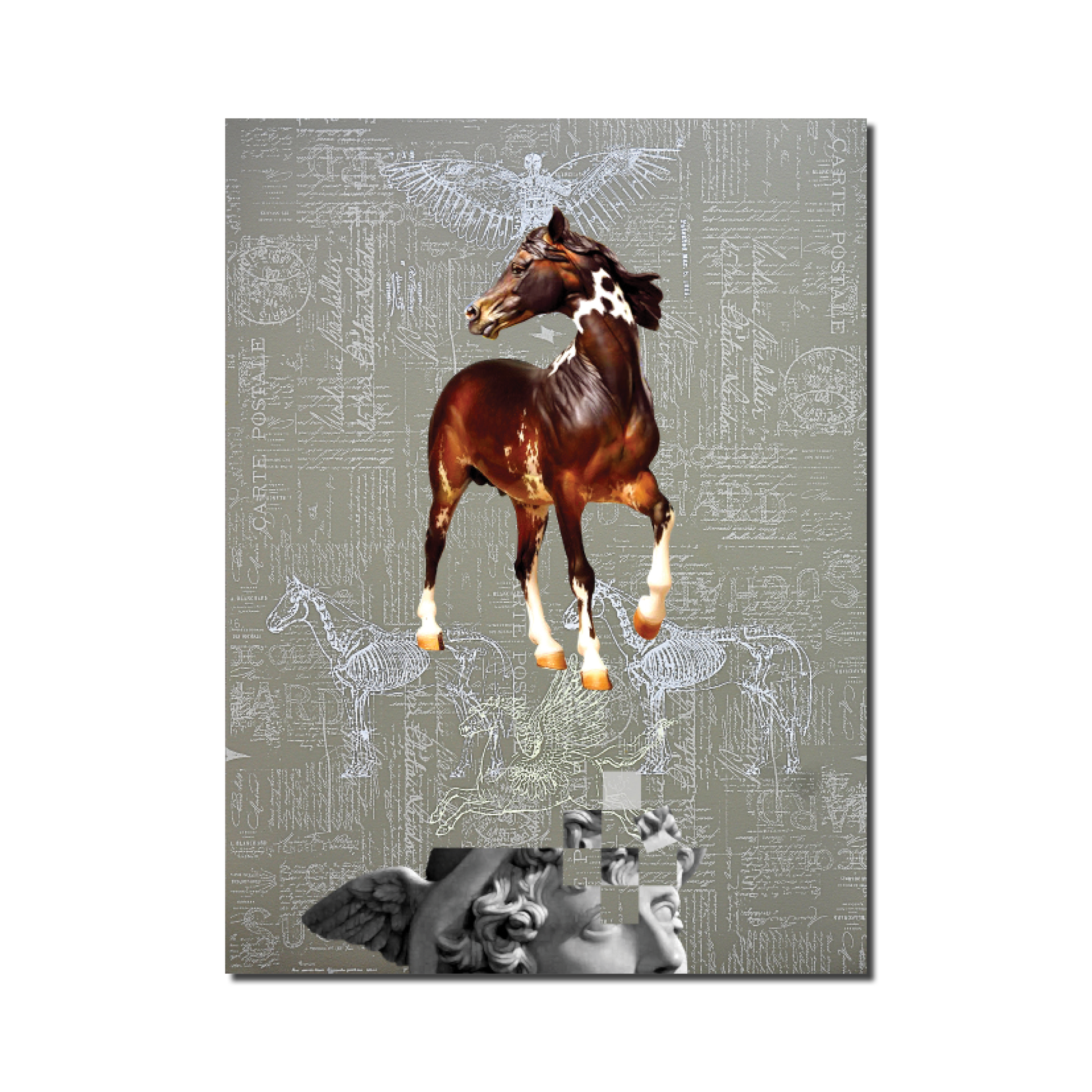 Kick Power Acrylic Serigraph and oil on canvas 48"x36" 2021 - A horse as a metaphor of a strong and powerful force. A force that can be use positively or the opposite. -Demet, known to many, a Fine Arts graduate major in advertising. Now a full time contemporary artist, his years of experience in the advertising industry is very much evident in his constantly evolving style, in terms of themes and subject as well as technique and figuration. An artist works in a vast range of media, drawing, painting, mixed media, 3dworks and digital photography.