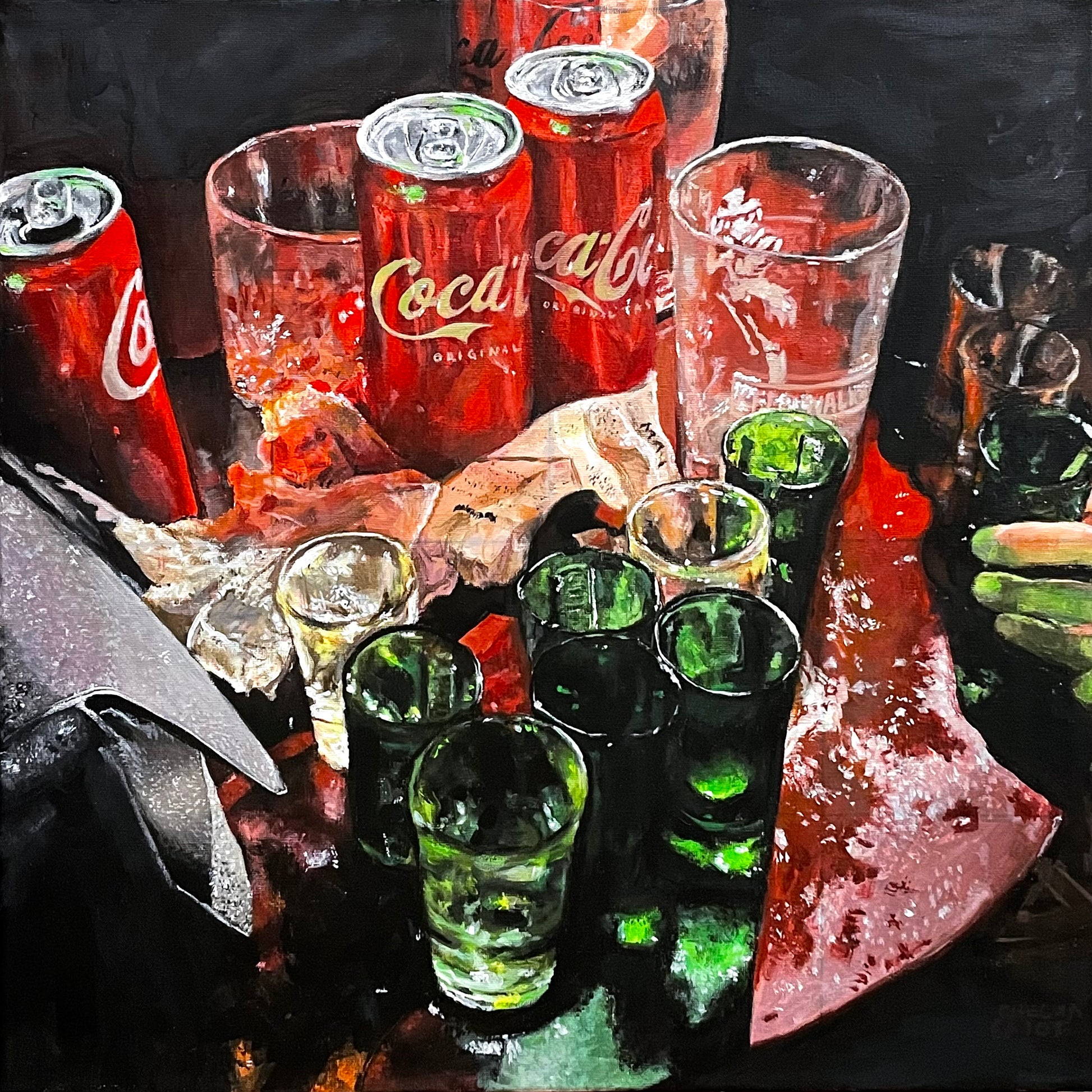 An image from an evening in February, implying the presence of alcohol without the alcohol itself. This scene holds familiar objects while being set during a transitory period, which created a sense of nostalgia and a quiet departure.