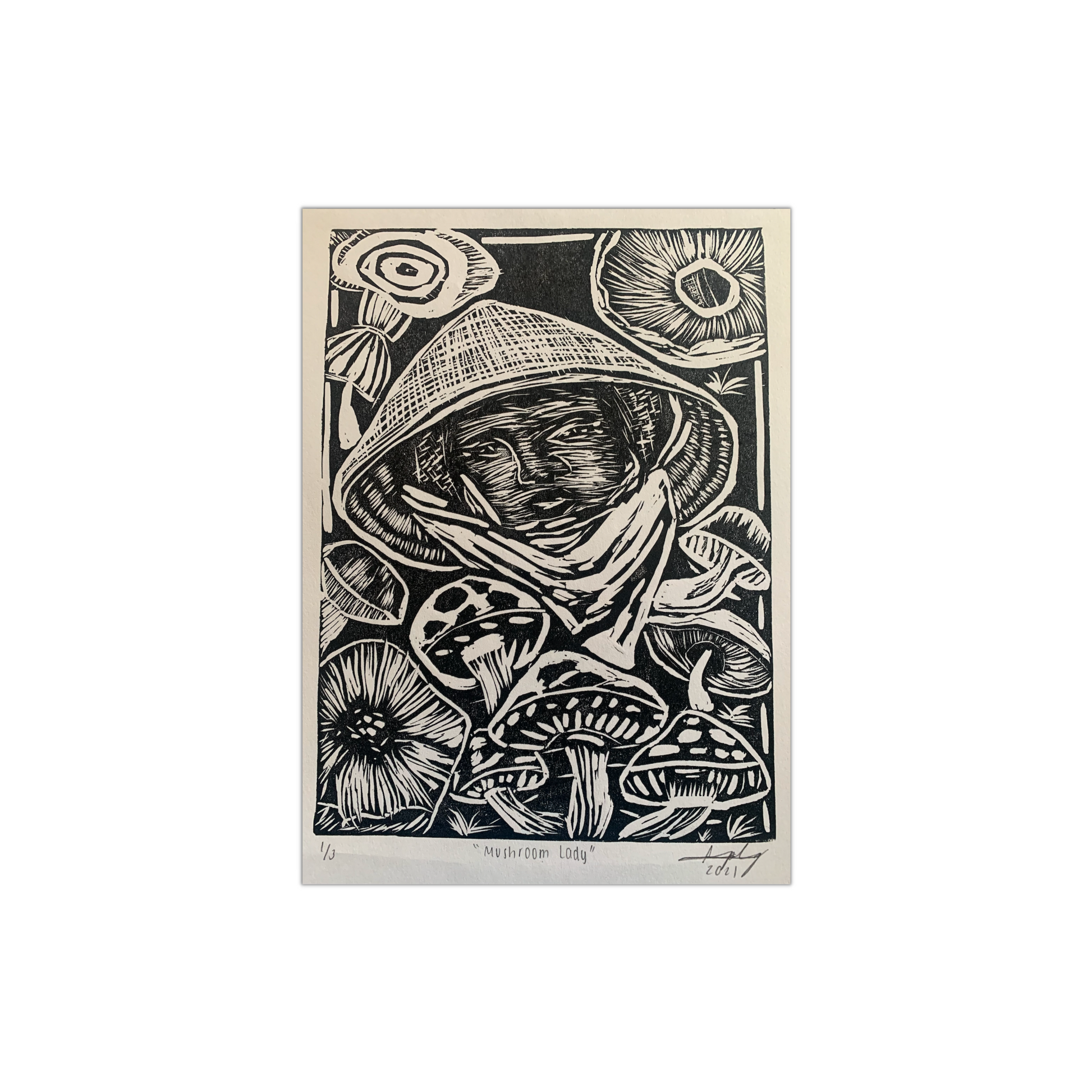 This work was inspired from my trip to Vietnam representing a Vietnamese woman. It amazed me how the hats reminds me of mushrooms.