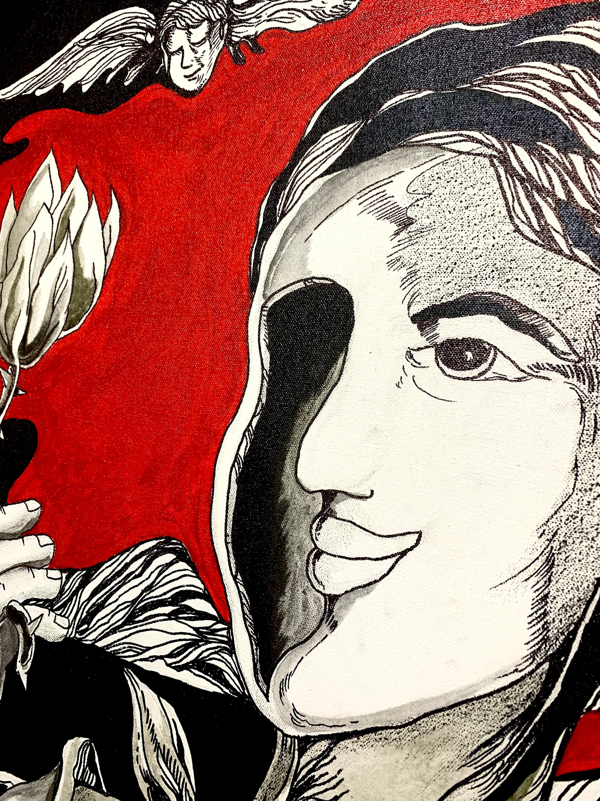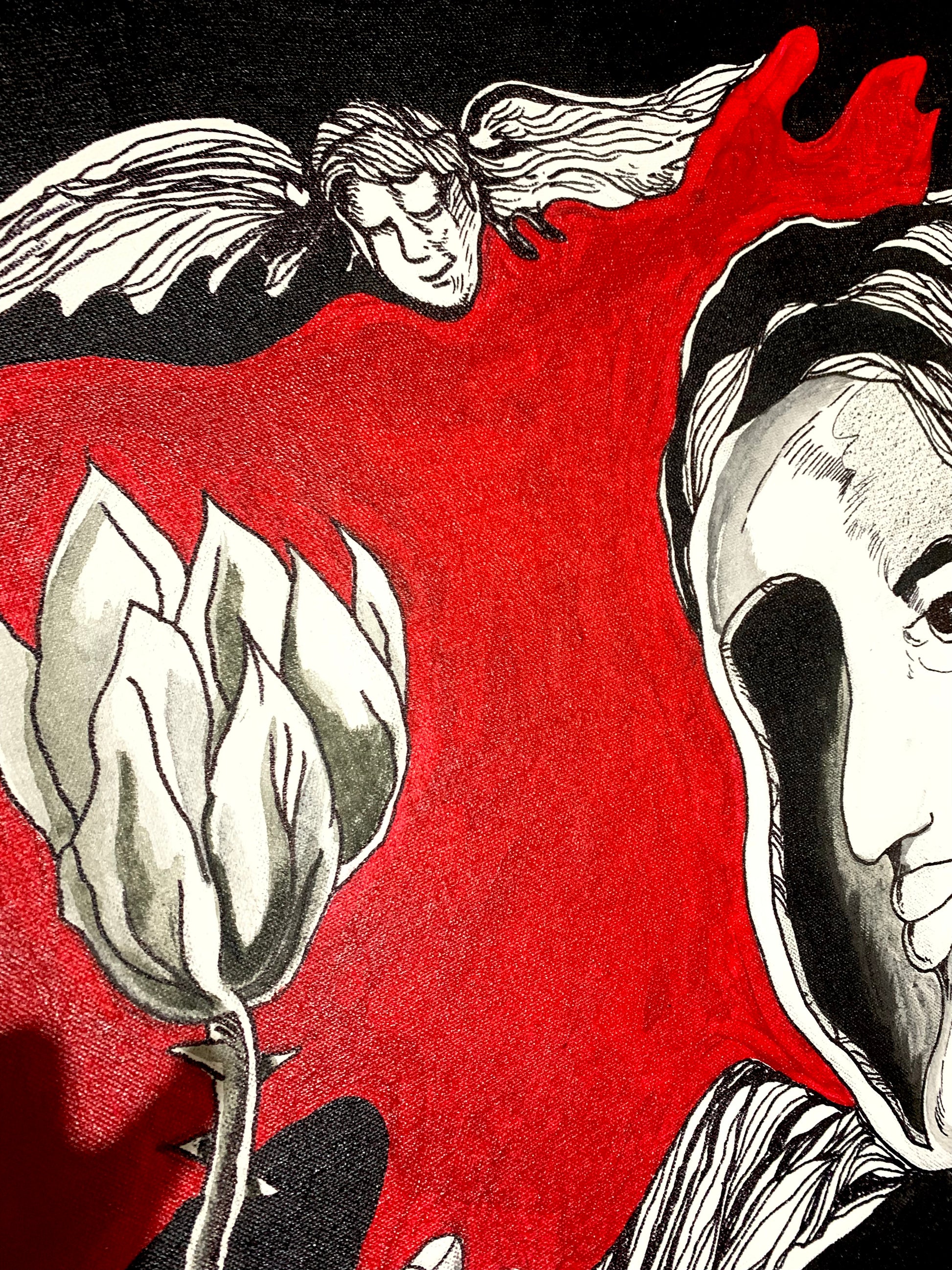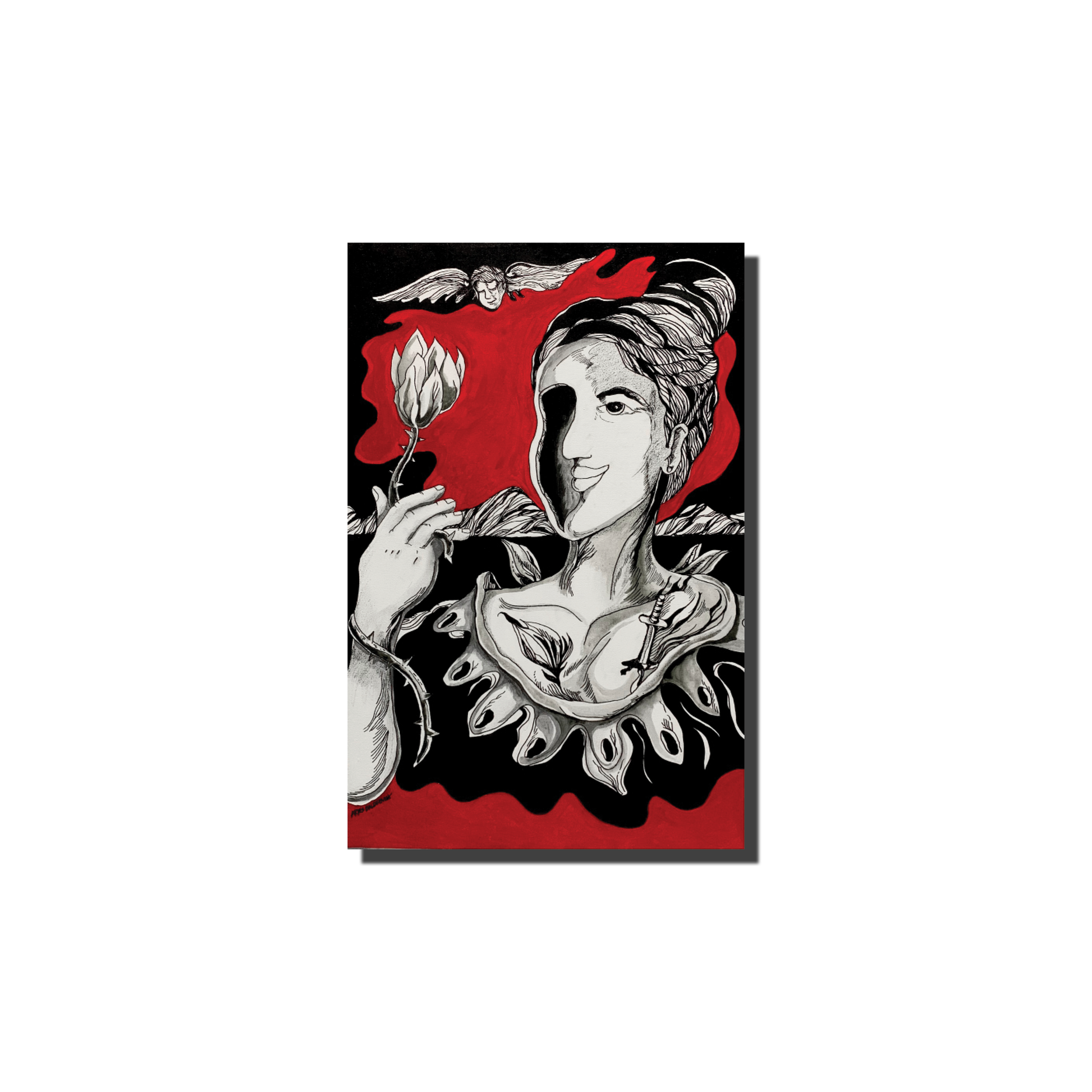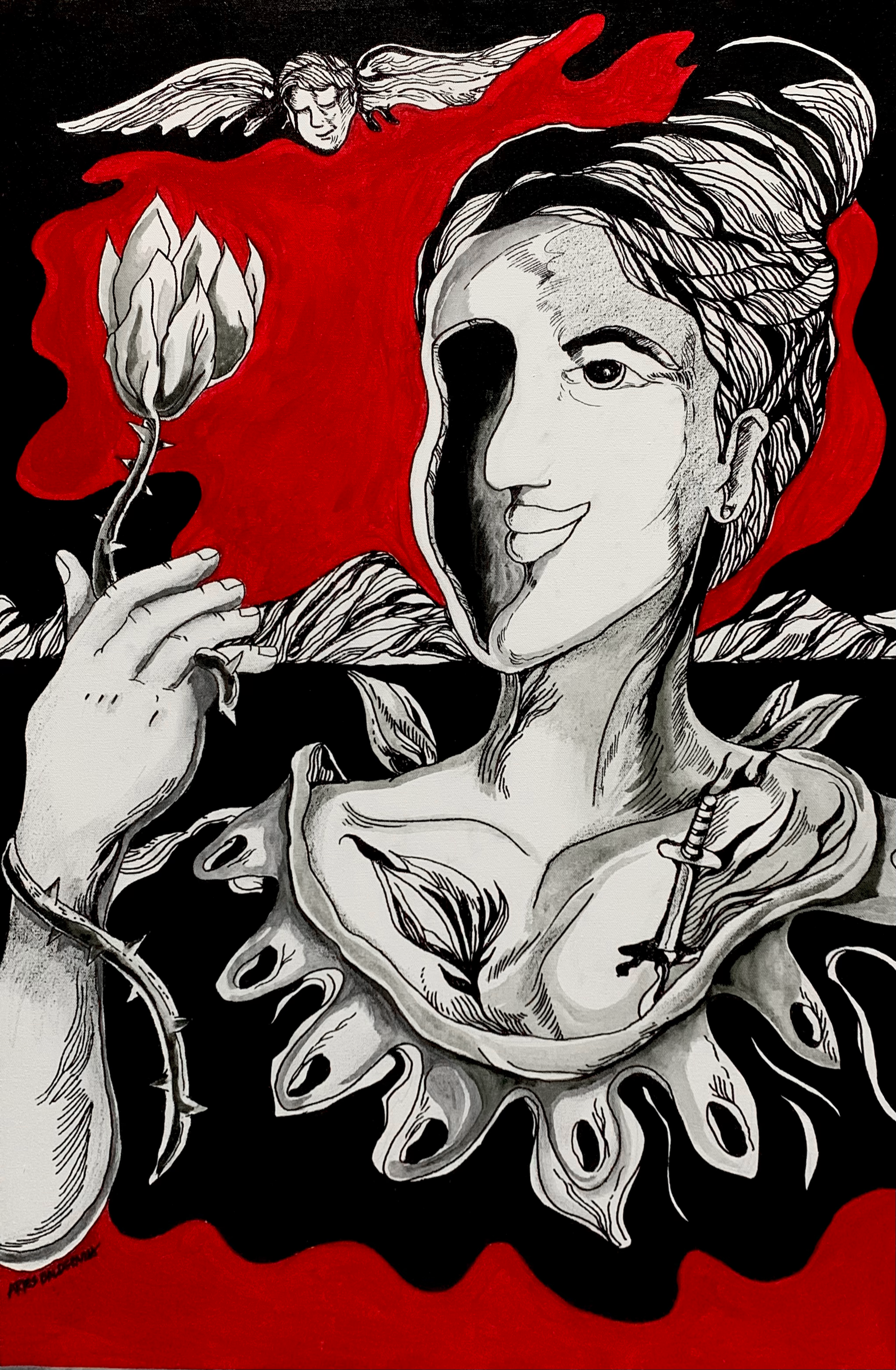Aries Balderama aged 46, is an Art Director in an advertising company while creating art on the side. Even though working a full-time job, Aries never gave up his love for painting and continues to produce masterpieces several medium mainly acrylics paints. As a husband and a father of two, Aries gets inspiration from them. Surrealism is Aries' go to art form in colors of red, black, and white. He believes that art lives within his heart that keeps his fire burning to get through everyday life