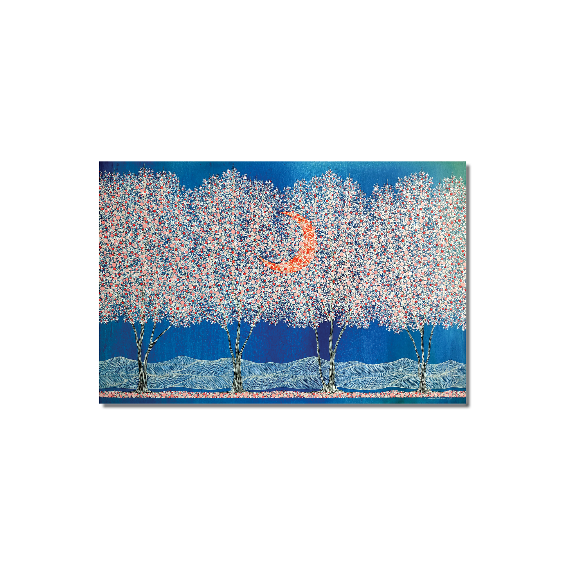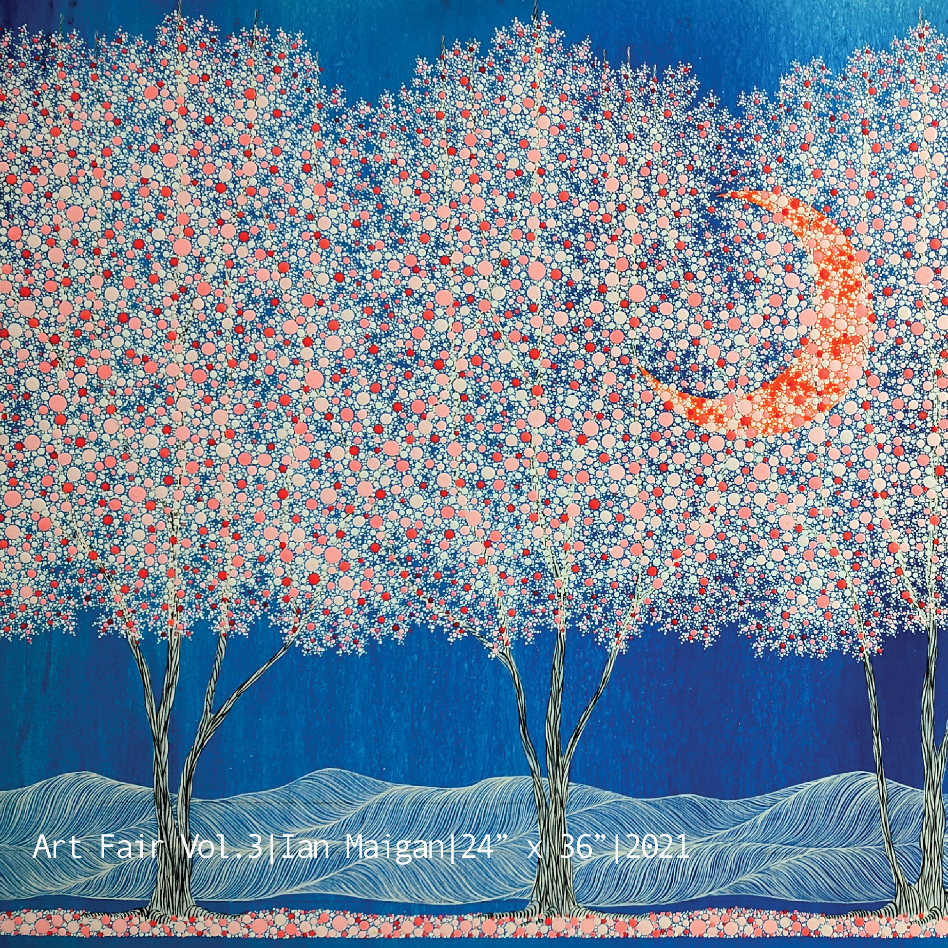 Ian Maigan Treescapes series echoes the importance of environmental awareness and preservation..His Pointillism further strengthens his advocacy that the love and care for nature eventually brings back rewards and unending prosperity for humanity..His trees remain to be a positive force with his representation of GOD as the Sun or Moon..It also celebrates his simple, happy and contented life blessed with all the things he needs..