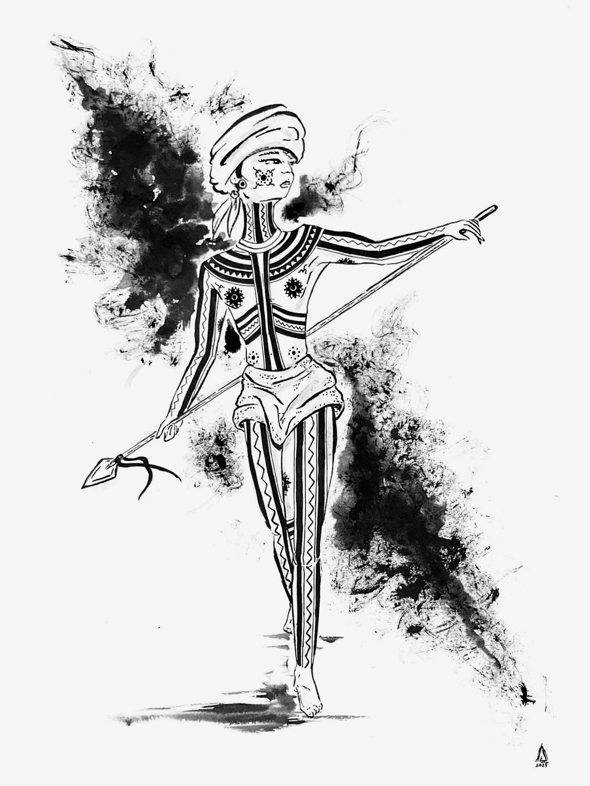The Pintados series is a cultural vignette of the indigenous tattooed people of the Visayan region. Colloquially called the pintados which means "the painted ones" by the Spaniards when they originally landed in the archipelago. This ancient tattooing practice is rarely represented in contemporary art and is often associated with other indigenous peoples' tattooing practices. The tattoo motifs represented in these pieces were referenced from the ethnohistorical document called the Boxer Codex - a manuscript containing illustrations and descriptions of pre-colonial Filipinos and other Asian peoples created around the 1590s. These ink illustrations provide a visual narrative on self-expression through body modification and how these motifs represents culture and identity.