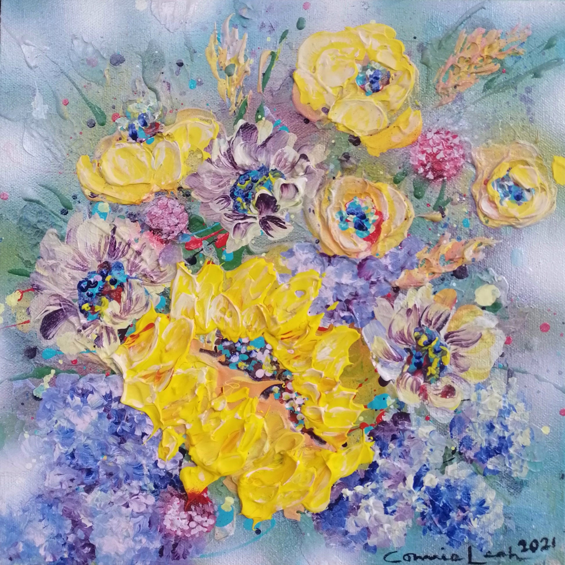 "Connie Leah Fantilanan-Jalem is a self taught Impasto-impressionism artist. Mainly having nature and women as my subjects Flowers as her favorite subjects, the colors, the strokes and the drips are her escape to balance life as a working mother. She uses palette knives, brushes, spray bottles and, even does finger-painting with oil or acrylic."