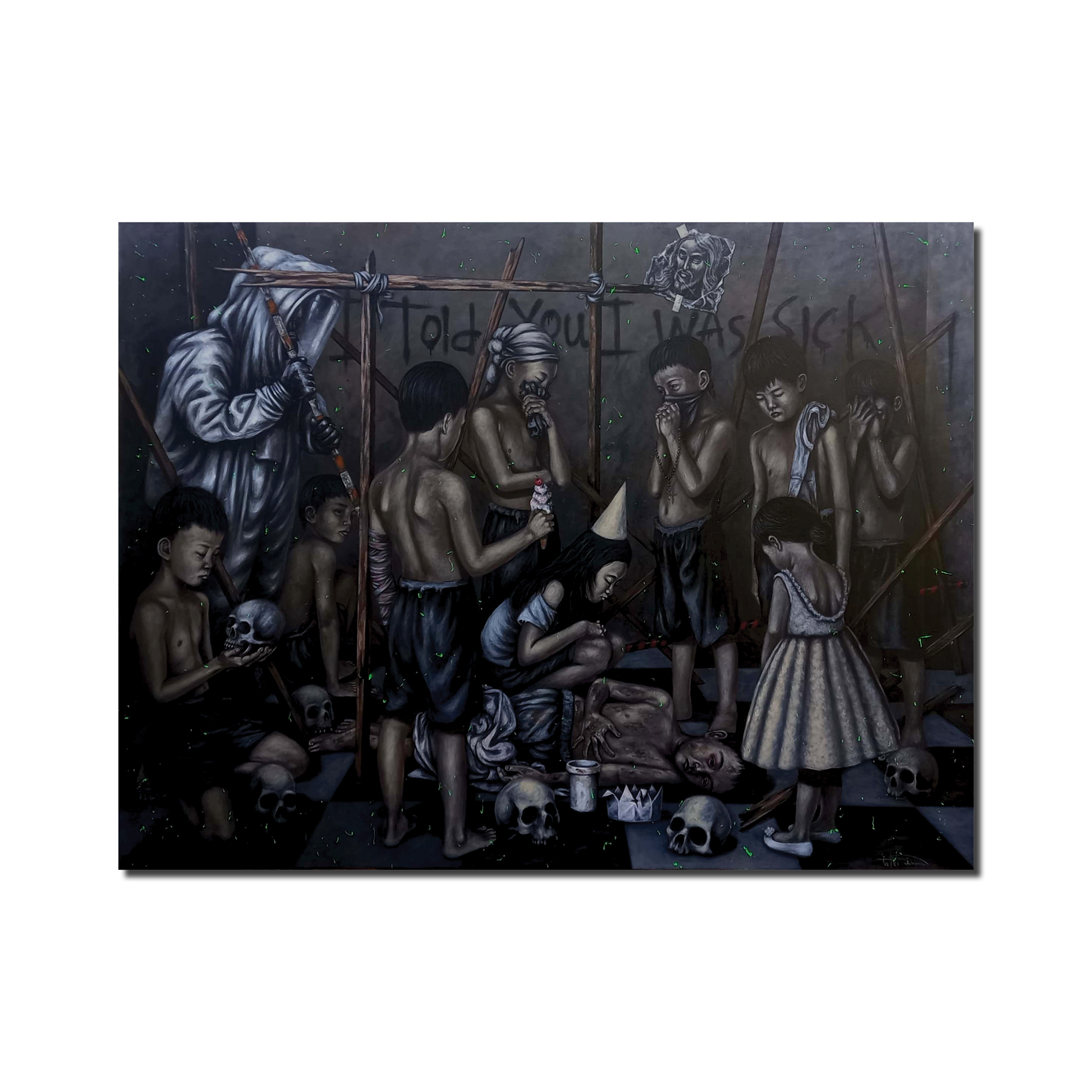 DENMARK DELA CRUZ b. June 1990, born in Bani, Pangasinan, lives in Brgy. Salasa, Bugallon, Pangasinan. Dela Cruz is an artist who tells story in his paintings about political and economic corruption, colonial history, poor living cultural Imperialism, abused kids in the society by unfair system, revolution in intense and expressive painting. Dela Cruz tell stories about the youth who became victims of the unfair system of the society, offering lessons through painting that will provide new direction and solutions. Armed with this knowledge people main gain an insight in what they can do to preserve the future for the next generation. Dela Cruz works captures the story of the past and present living of the people and their future, the current situation of the children in the society, He captures the stories and expressed it into a monochromatic dark colors of social change, criticizes corruption and abused of the justice system of the society. Dela Cruz deals with the Sensitive theme and subject, he expresses his works that will reflect hard work, passion and stand apart in the world of contemporary art that showcase with visually appealing work.