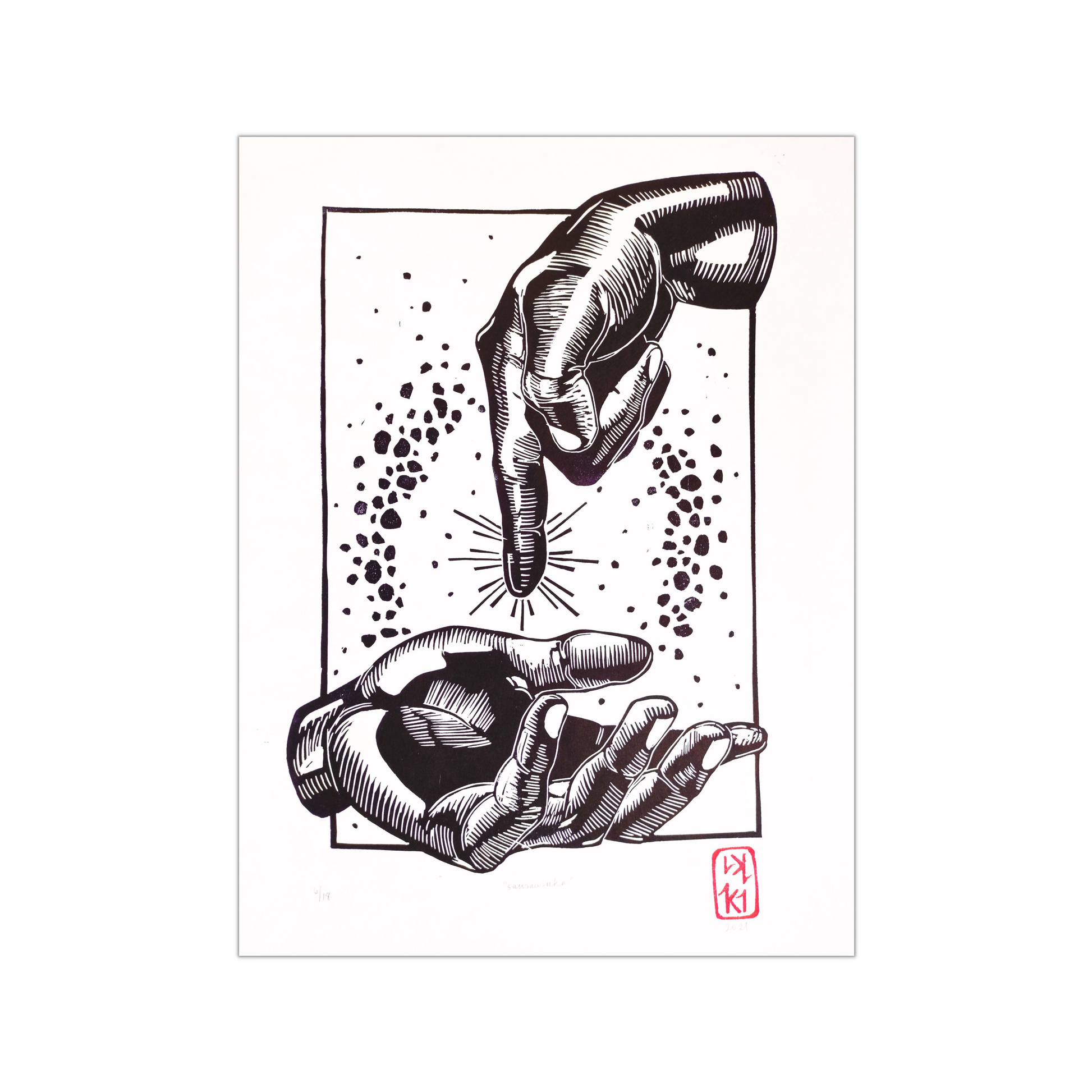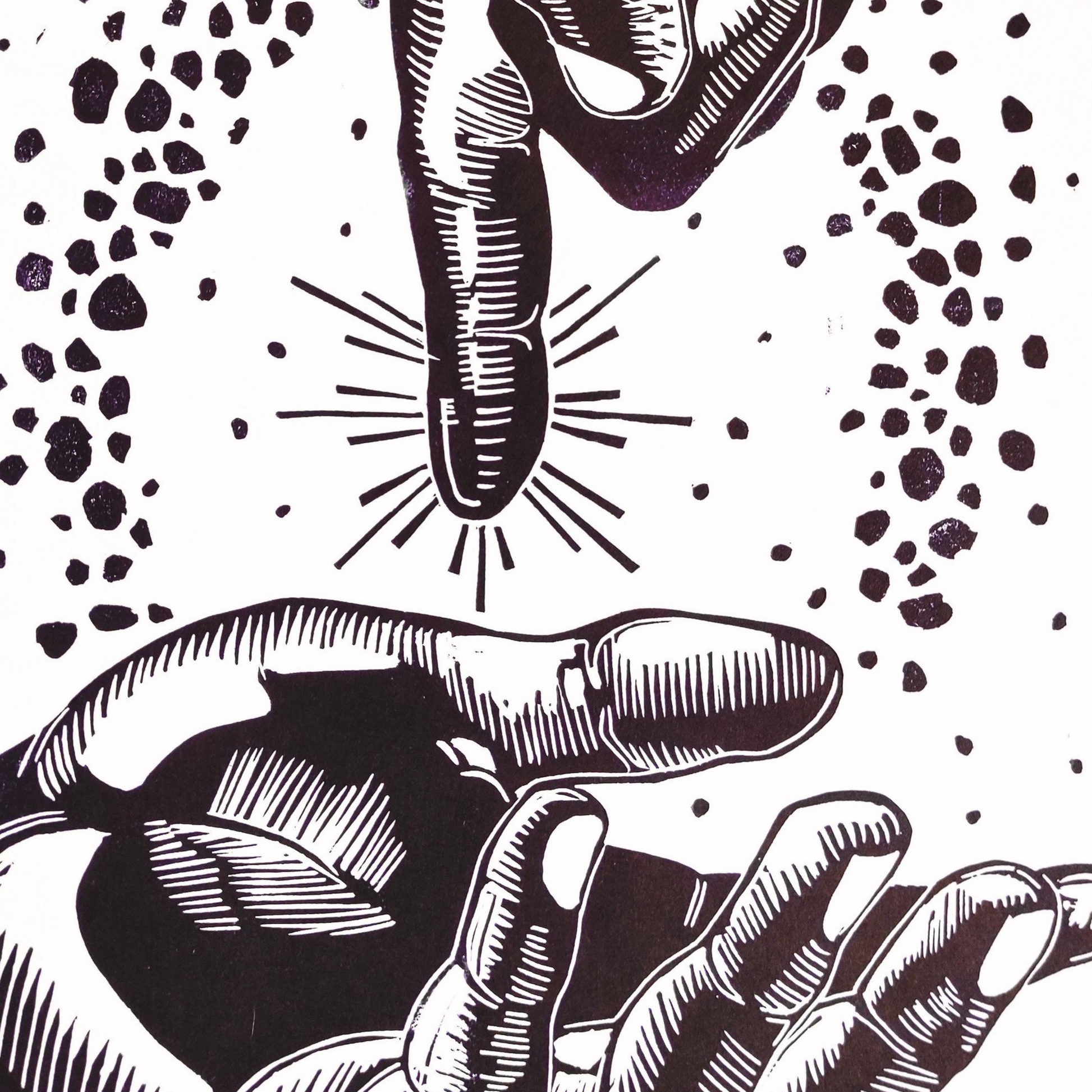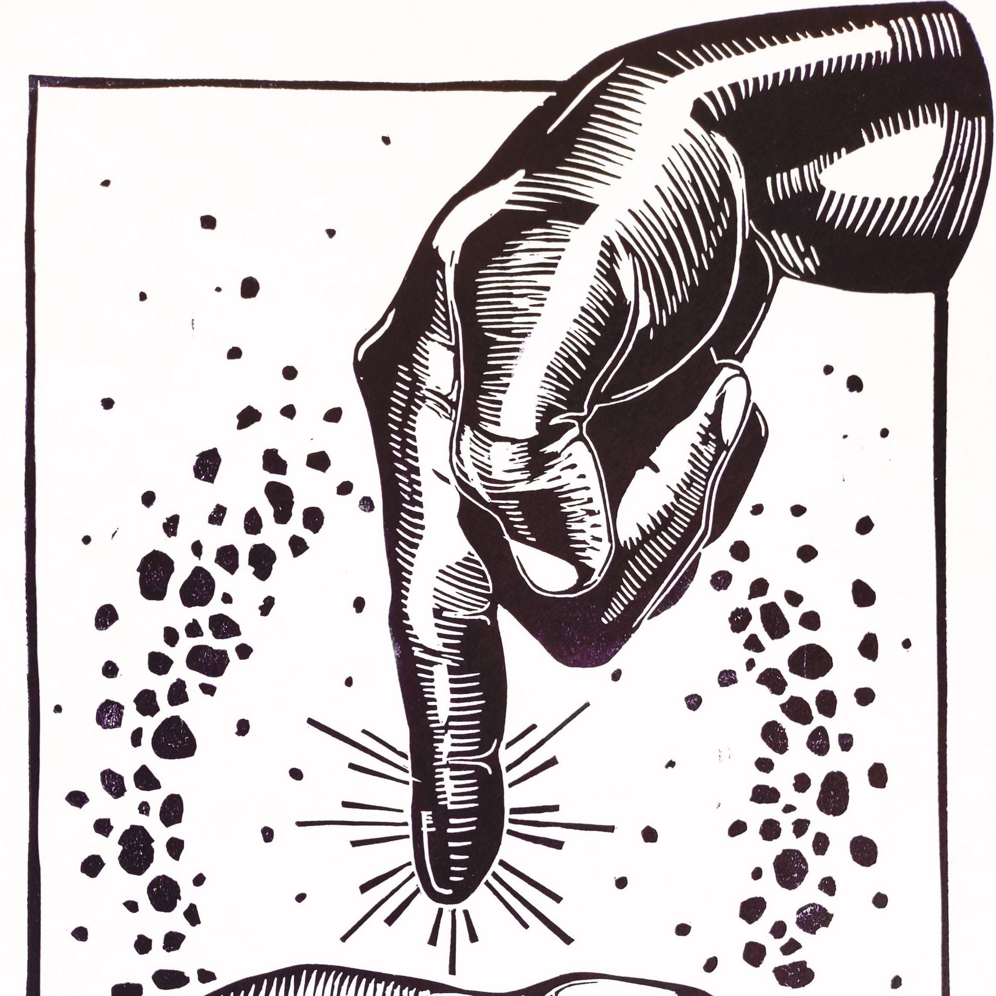 Linocut relief print, Oil-based ink on Paper