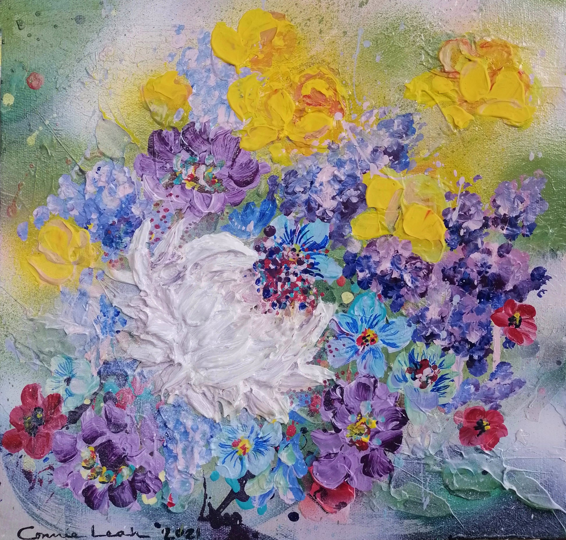 "Connie Leah Fantilanan-Jalem is a self taught Impasto-impressionism artist. Mainly having nature and women as my subjects Flowers as her favorite subjects, the colors, the strokes and the drips are her escape to balance life as a working mother. She uses palette knives, brushes, spray bottles and, even does finger-painting with oil or acrylic."