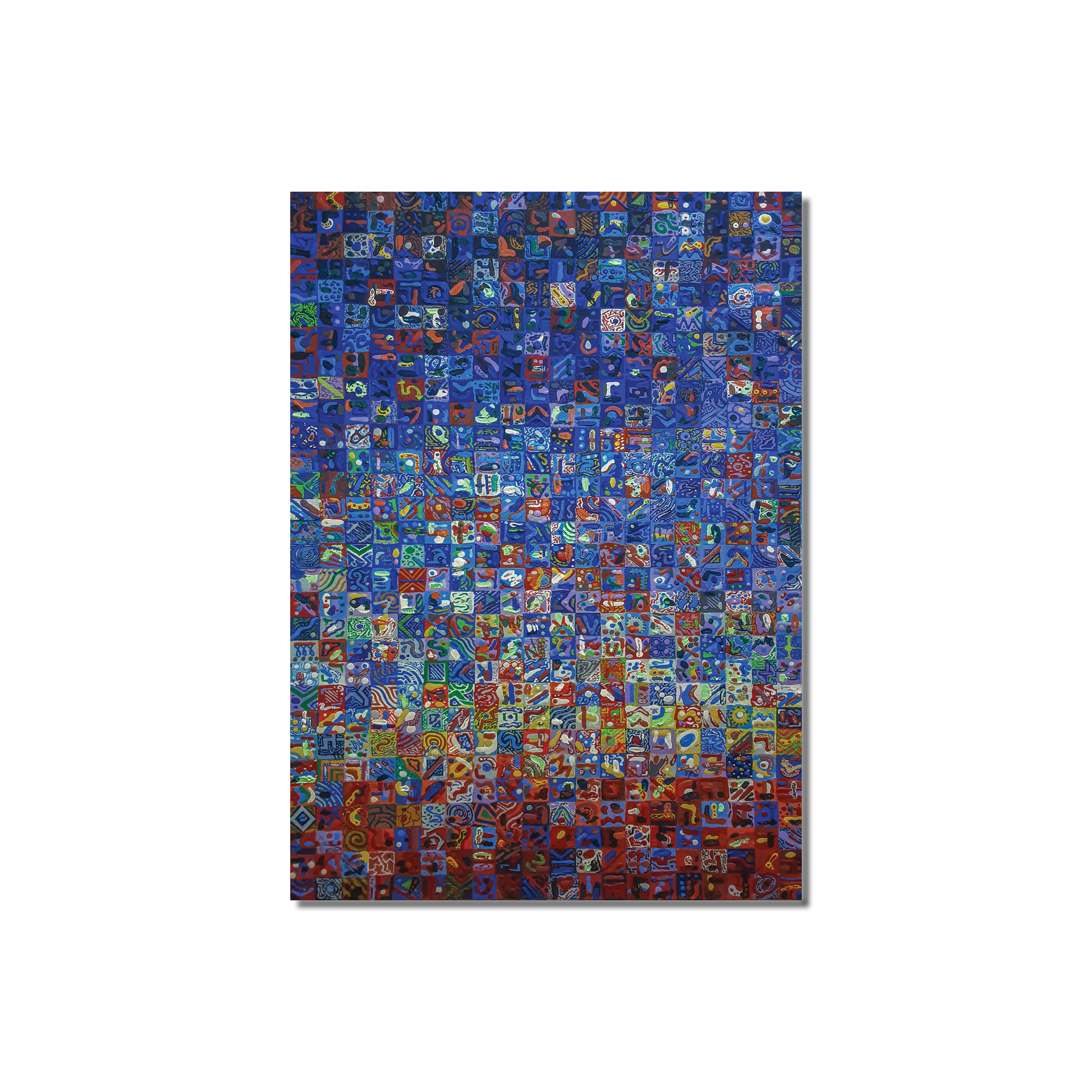 Abstract Expressionism. The medium is Acrylic on Canvas. Showing different expression in every 1-inch-sized-box. Each frame, all in all, the painting is gradually changing its color but rendered in expresionism style.