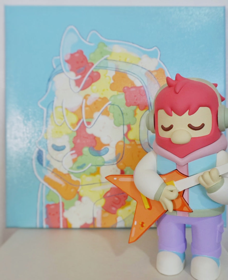 Inspired by David Bowie’s album cover, I wanted to create a piece that reflects Koobi’s musical essence. Bowie’s closed eyes mirror Koobi’s own.