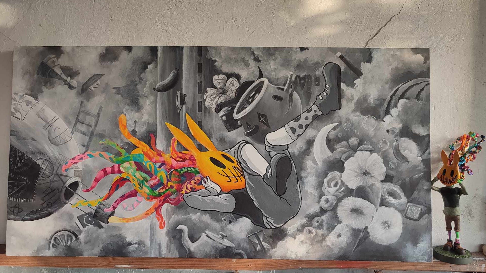 The painting can be rotated in all directions resulting new compostion and subconscious meanings.