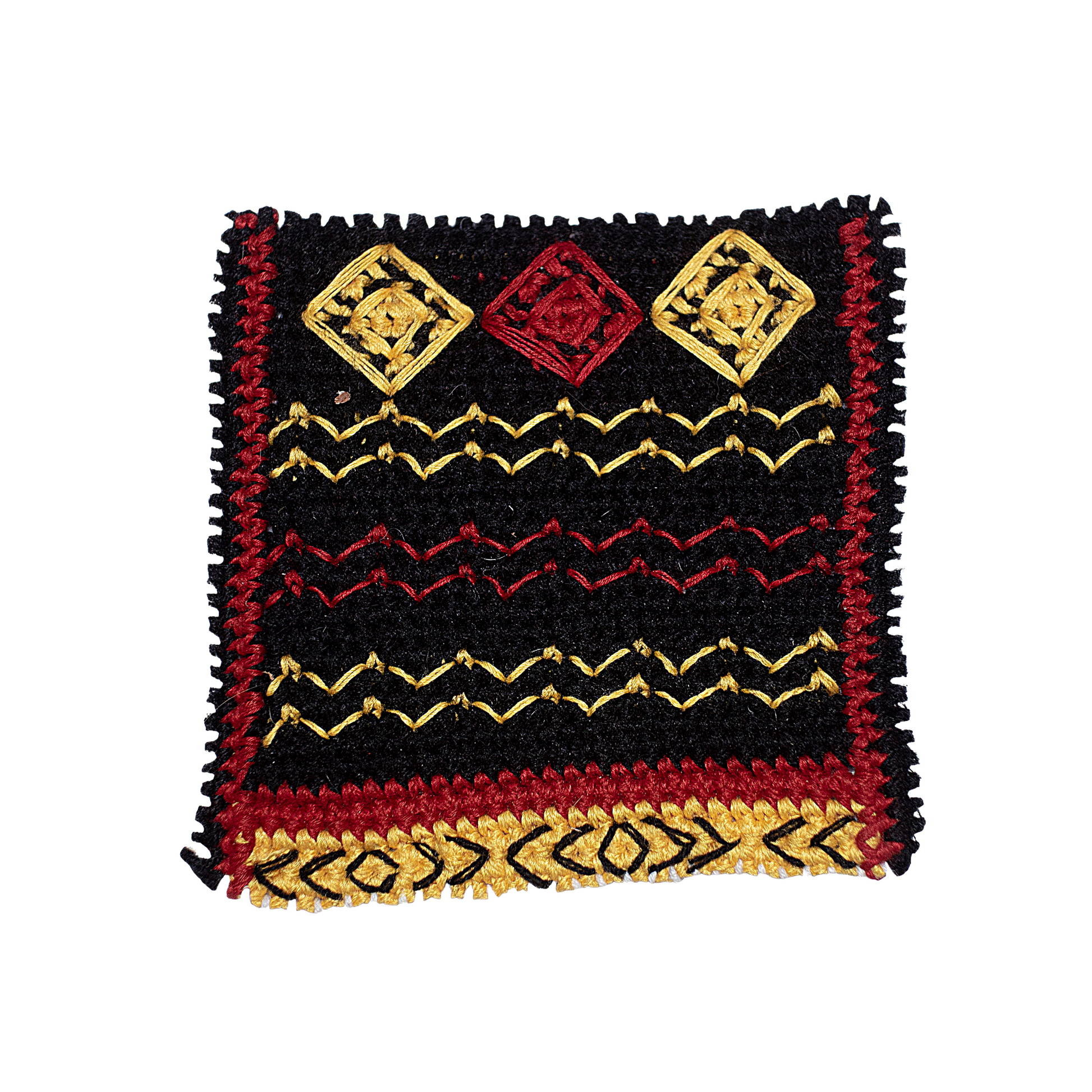 " This collection of Ululay's work is largely inspired by patterns from Northern Philippine indigenous textiles. The effort to combine the age-old practice of crochet and the meaningful symbols from these patterns is borne out of the artist's own indigenous roots. The textile patterns included in the pieces mimic the Mountain Province "tapis," "wanes," and the ceremonial "bakget.""