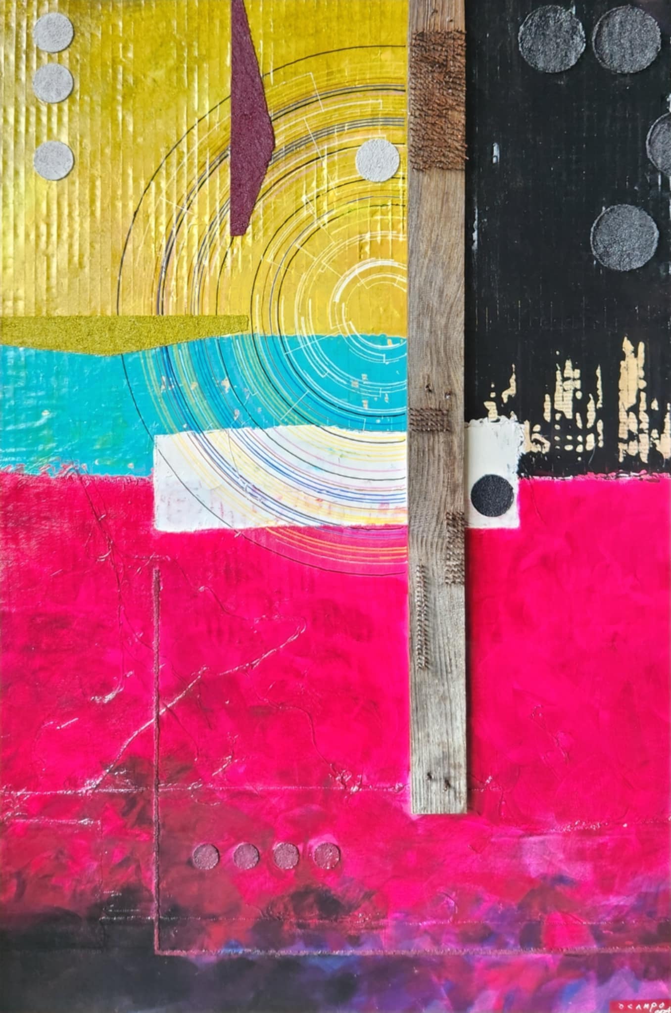 Mixed Media (Acrylic on Layered Canvas, Charred Wood)