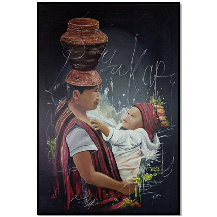 “Yakap” is a tribute to all the mothers in the world and to all fathers’ plays the role of a mother as well. The subject is inspired by a tribe mother in Mindanao carrying her child with great love and compassion despites of the challenges they’re facing every day. This gives us the emotions and feelings of happiness, hope, unconditional love while reminiscing the moment when we’re still in the care and loving arms of our mother.