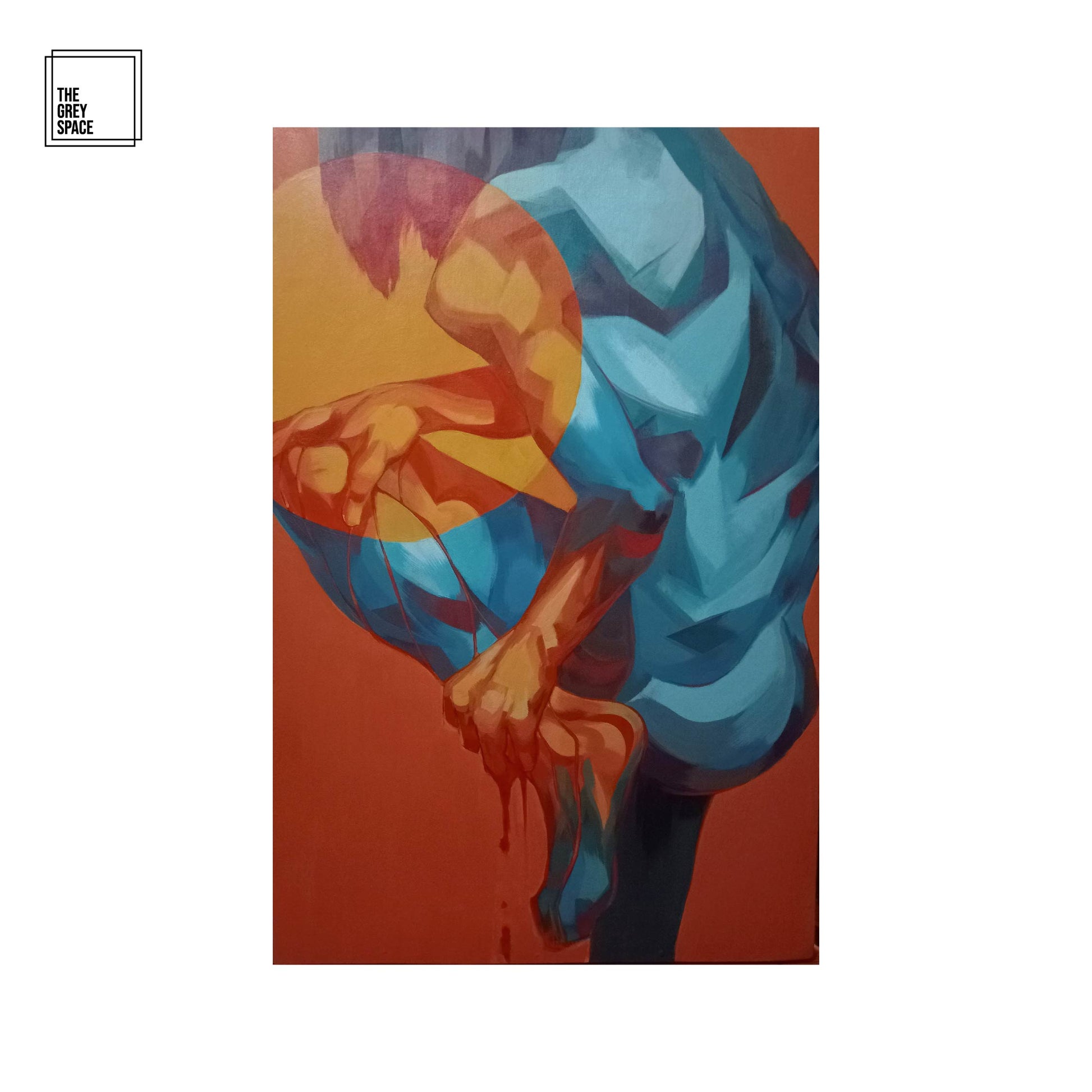 The work circles around the idea of toxic positivism and how we can recognize it through our own actions. Orange and blue are complementary colors and the amount of blues and oranges you place on a work defines its mood. The ratio of blue and orange in this work is almost equal and it feels alien. I wanted to encapsulate the feeling of becoming aware of what it is that we are doing when we encounter negativity. We’ve created a world of comfort by avoiding sadness and during the past years, it has become unbearable. We are breaking, and bleeding yet we revert to old practices and paint ourselves yellow as if nothing happened. Simultaneously suspended in the yellow light of traffic, hoping for the cycle to end.