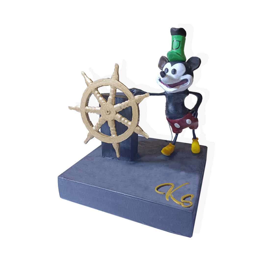 The Iconic Mickey Mouse passing control is laden with significance. It's a moment of trust and transition, symbolizing the transfer of responsibility. The helm, traditionally a symbol of direction and control, here represents the decisions we face in the journey of life. By allowing you to take the helm, the sculpture suggests that it's your turn now to navigate through life's turbulent waters. This gesture of Mickey not only invites you to take charge of your own destiny but also serves as a reminder of the weight of accountability that comes with it. The artwork is a metaphorical call to action, urging the observer to embrace the responsibility that comes with making decisions. It reflects on the importance of steering your own course with wisdom and foresight, acknowledging that every choice we make shapes our journey ahead. Through this sculpture, I aim to convey that while guidance and inspiration can come from many sources, ultimately, the responsibility for our actions and their consequences rests with us