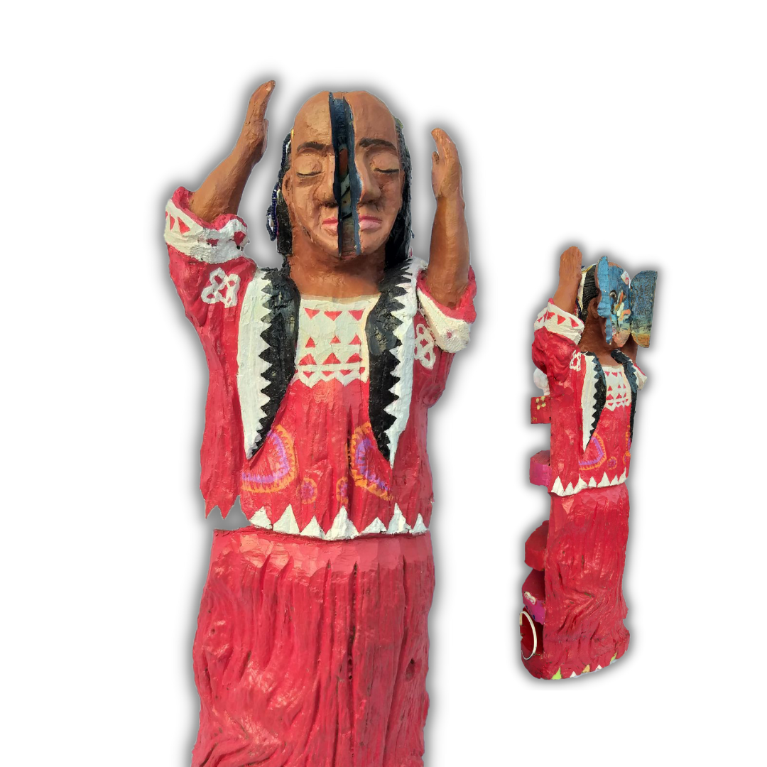 Hand-sculpted Mulawin and Yakal hardwood ,Inlaid Mother of Pearl ,Inlaid Carabao Bone ,Acrylic and Glitter Wooden Assemblage