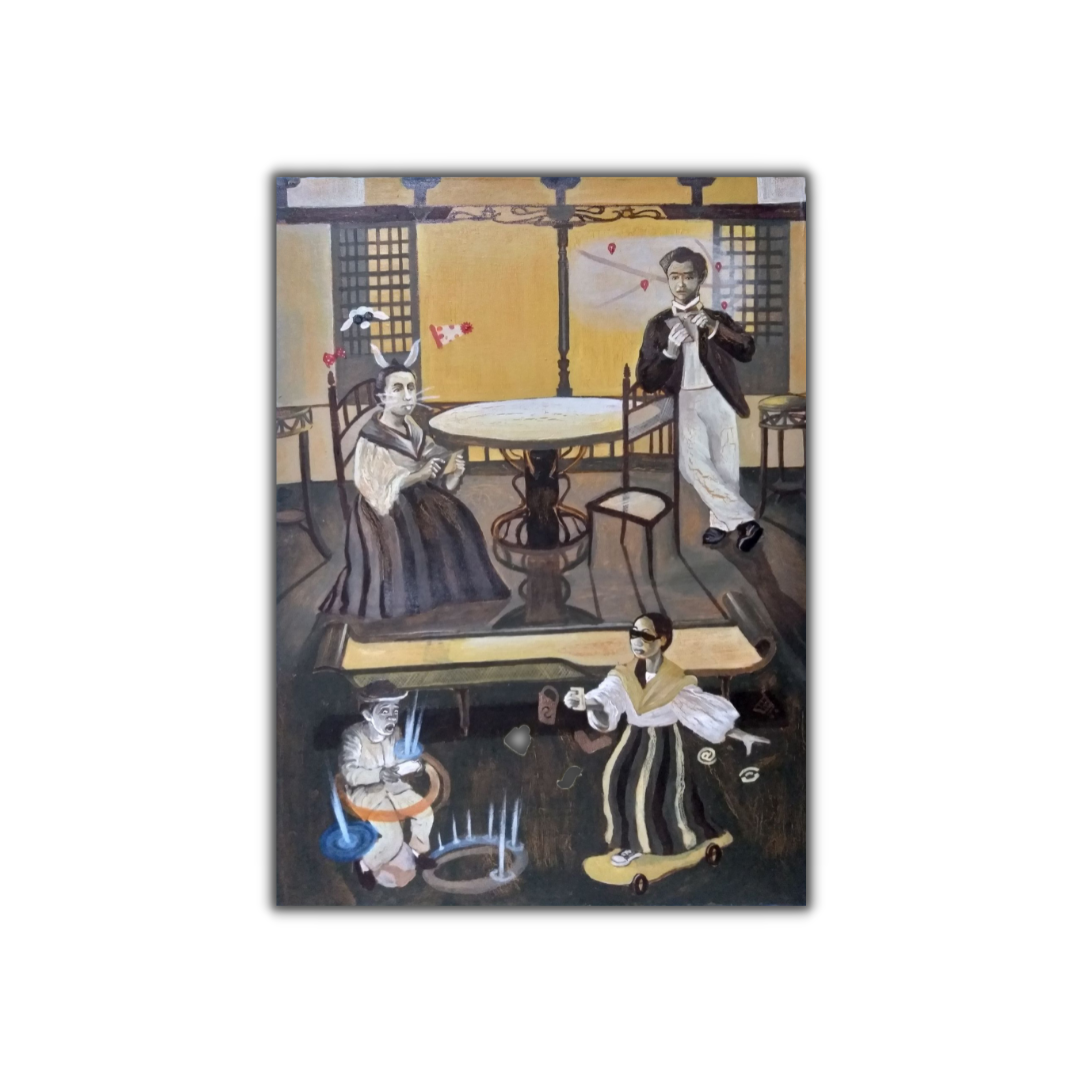 “The rise of modern technology has fascinated men that both genders have been hooked ever since the technology of smartphones has been updated. This work shows how I see eventually that the downward spiral of morality and materialism would prevail and addiction to the internet and even video games have risen to obsession as we see in every corner and street of our country is literally hooked to the dark side of technology"