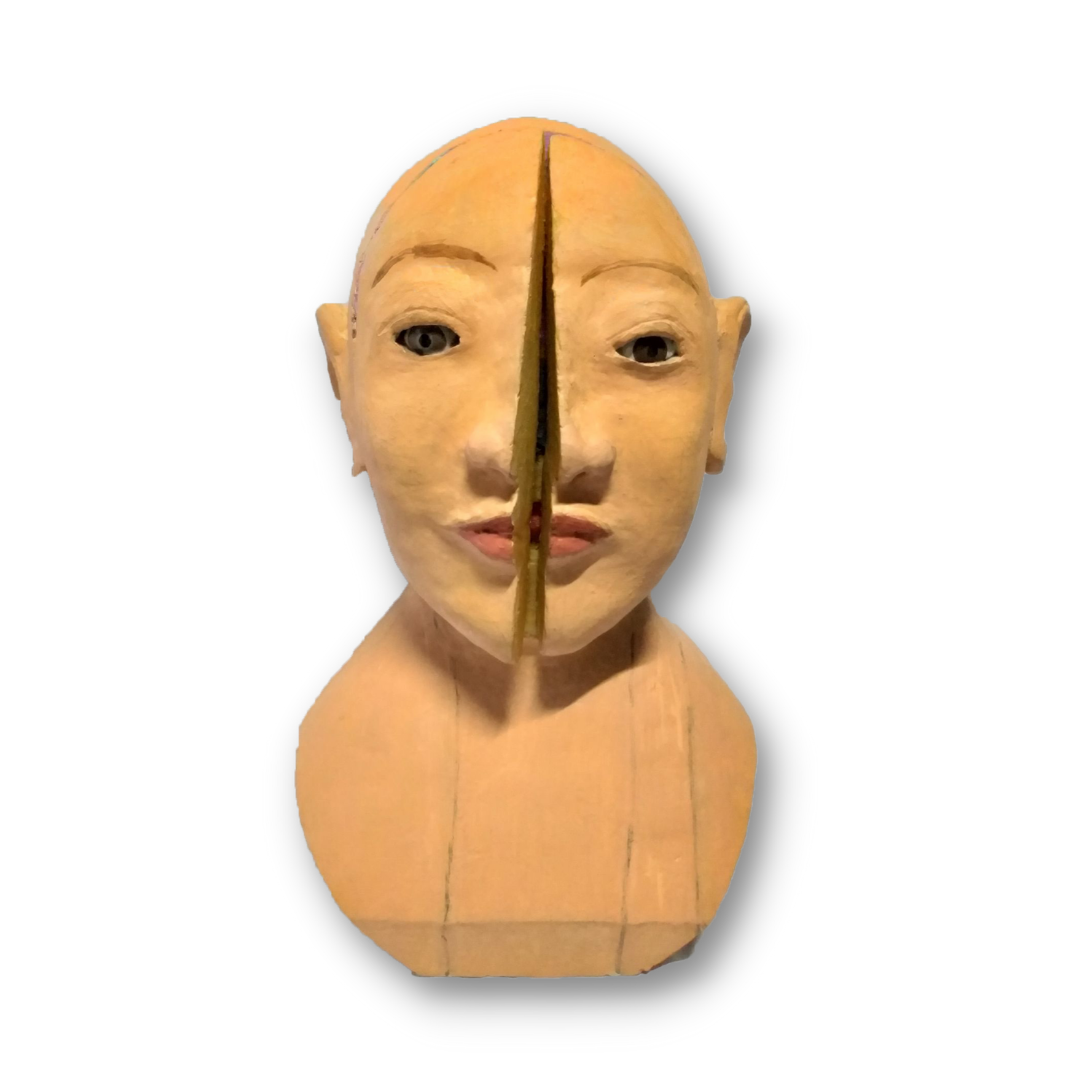 This sculpture was inspired by my fascination with colonial ivory santos. At the same time I felt that it was an appropriate vehicle to express my thoughts on how pervasive the artificial cosmetic business has boomed so much so that the Filipinos have all along been all too eager to change their physical appearance and forget what nature has endowed them with.