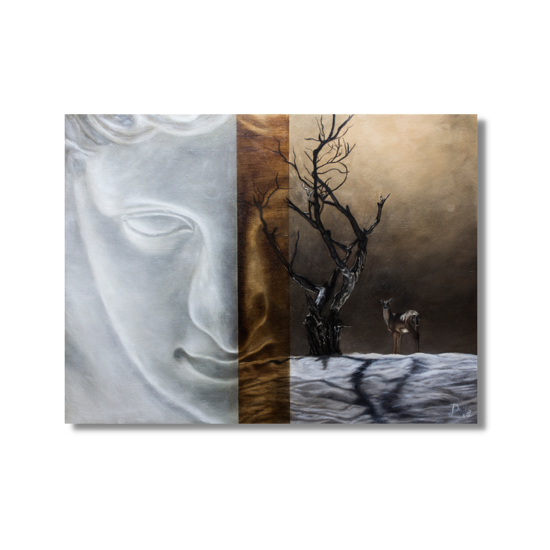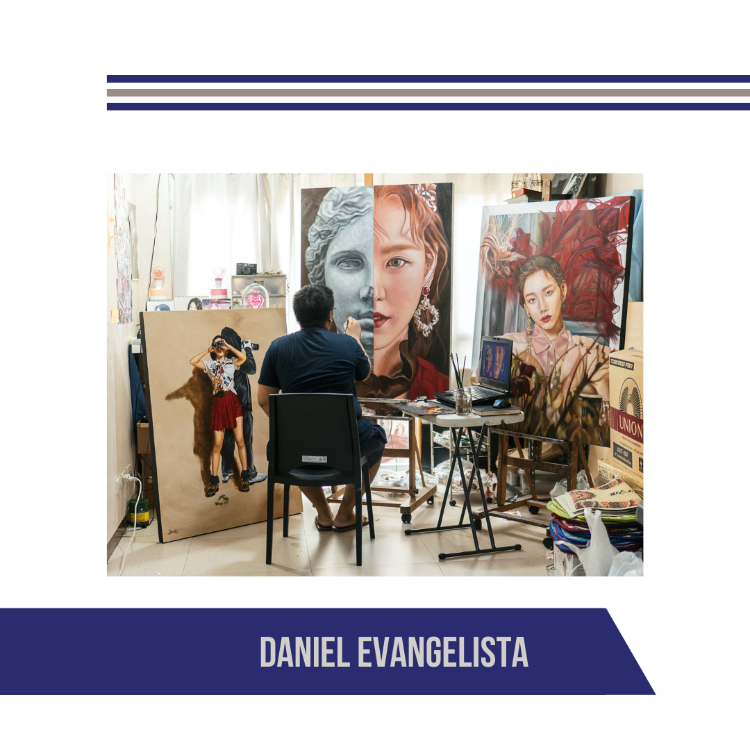Daniel Evangelista is a graduate of BFA- Painting from the University of Sto. Tomas. Evangelista, a photographer-turned-painter practices and combines both art media in producing his larger-than-life oil paintings. His style gives a nod to realism and surrealism art movements woven with his love for K-Pop music and classical paintings— both of which he considers his biggest inspirations and influences.
