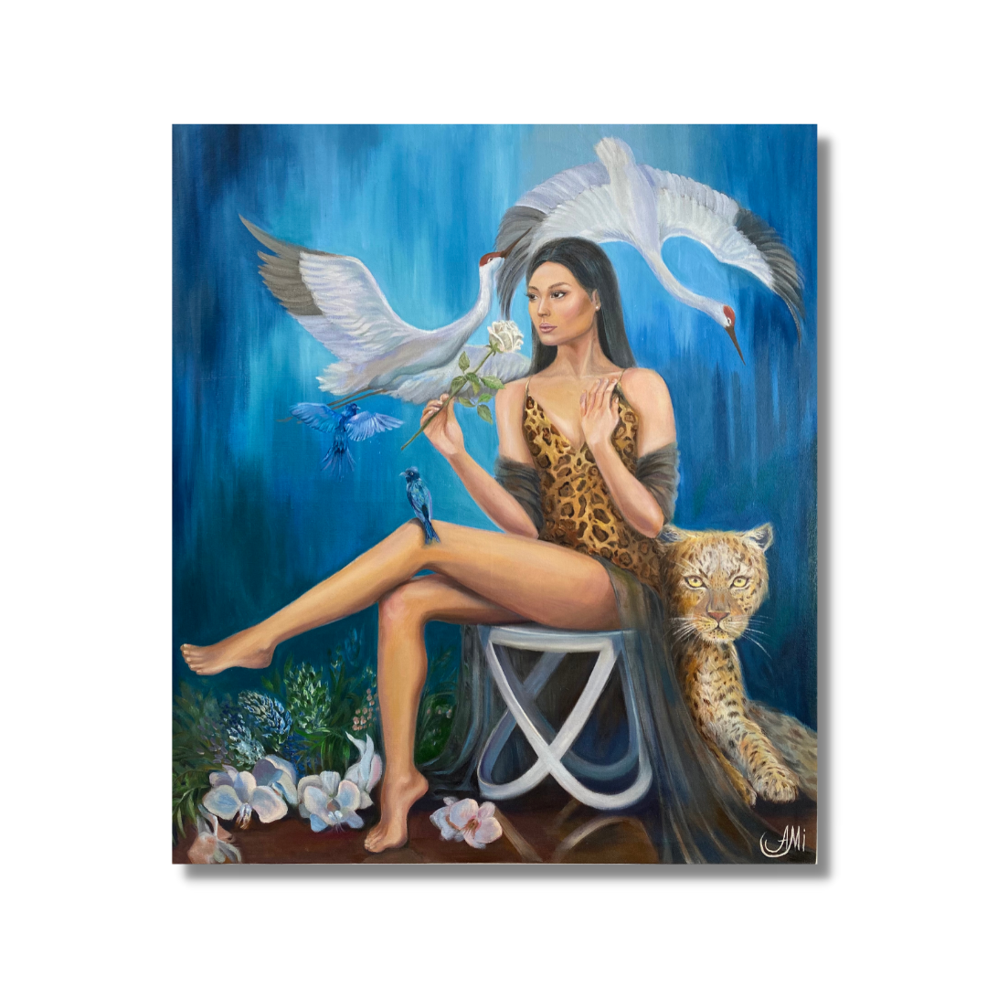 “Portrait of a style icon. What we are used to seeing is not always real. The soul keeps many hidden secrets. The soul is multifaceted. The hidden predator, graceful bird, or beautiful flower.”