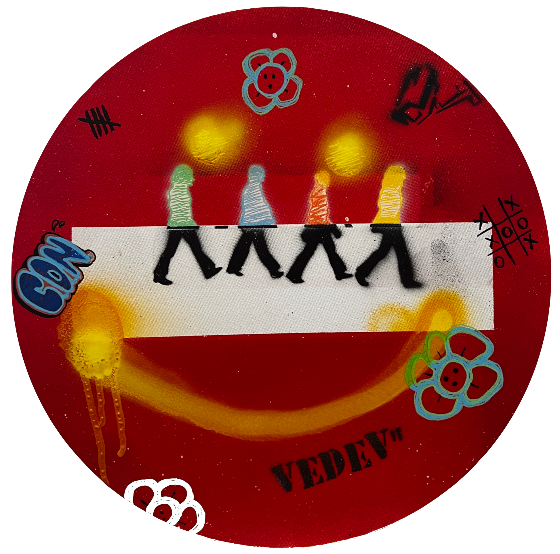 As The Beatles stroll through the sign, their music seems to fill the air, infusing the scene with a sense of joy and liberation. The graffiti markers, with their bold strokes and intricate details, add layers of meaning and interpretation to the artwork, inviting viewers to explore the intersections between art, music, and cultural iconography.