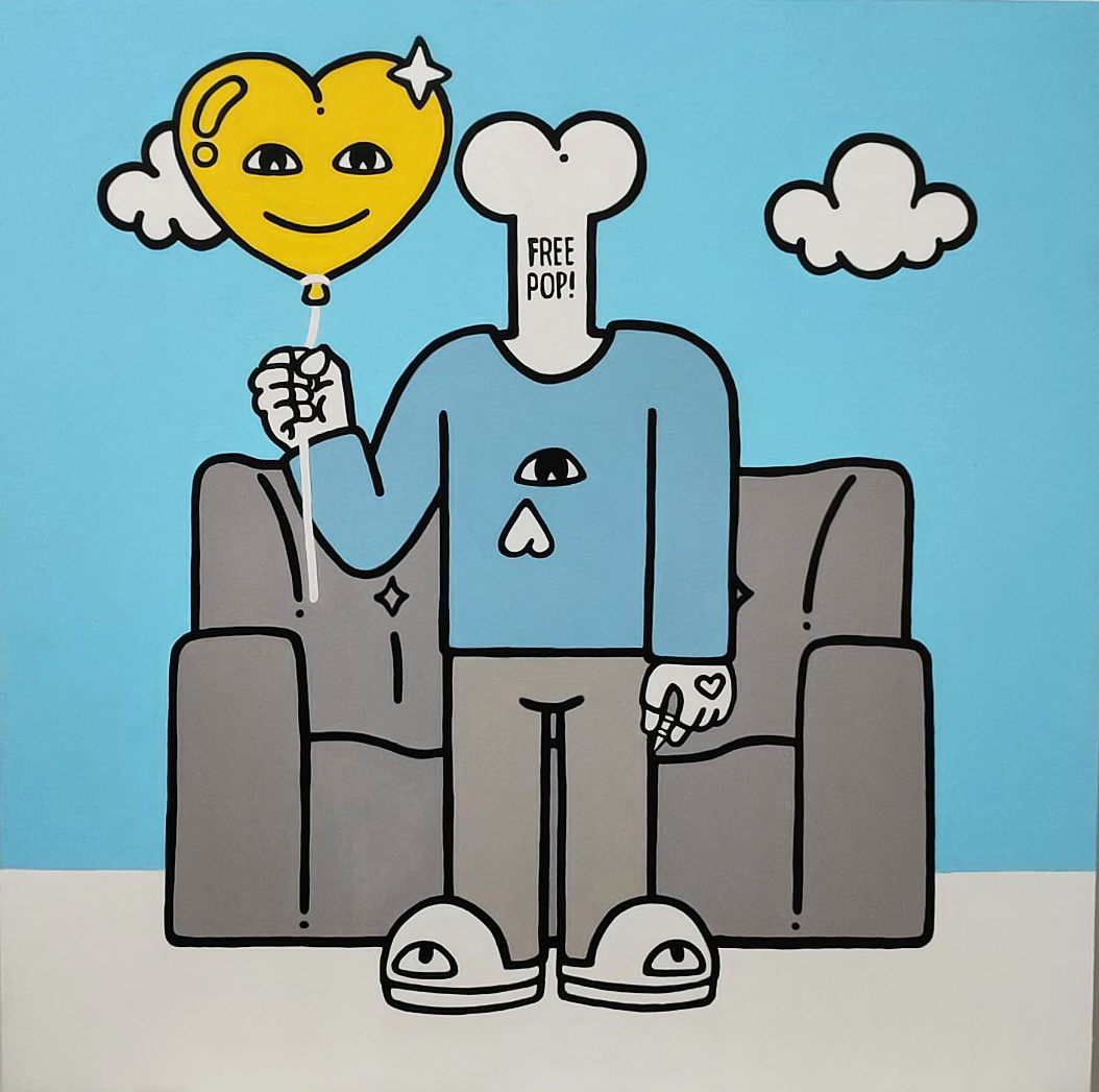 The painting expresses the idea of giving with a pure heart, but it's tough when people burst our good intentions, just like popping a balloon, and it hurts.