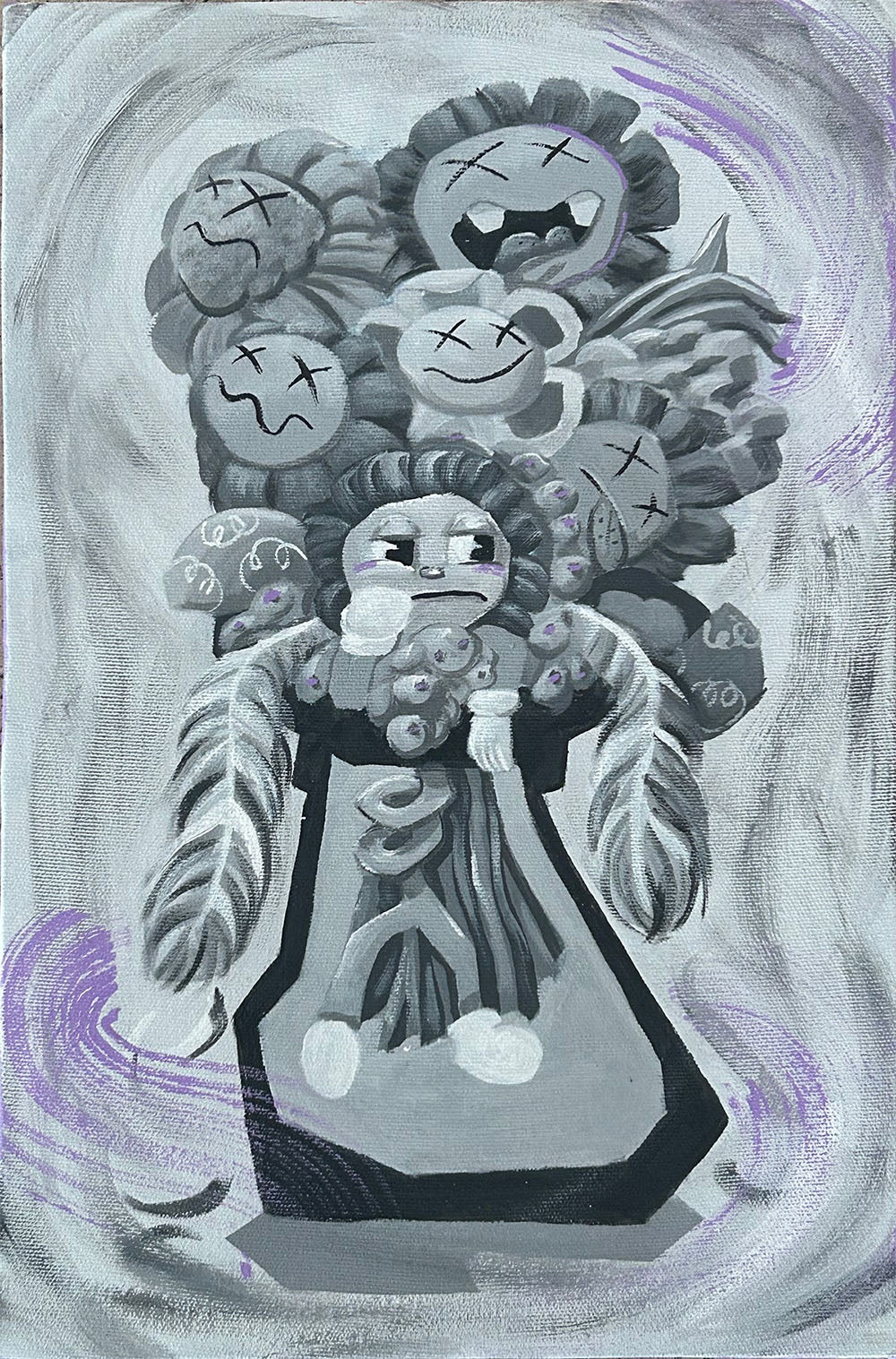 In 'Such is Life 02,' the once lively Kiko flowers are now in a state of lifelessness, save for one bored and waiting. The muted colors and minimalistic palette urge viewers to contemplate how they can actively reclaim their energy and make impactful choices rather than resigning to a passive existence.