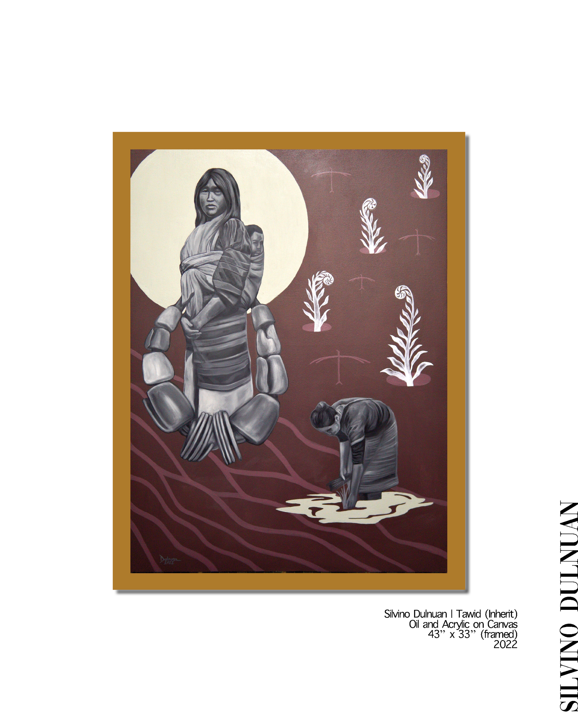 The unity and struggle between modernity and heritage recur as subjects in Silvino Dulnuan’s visual projects. Although he is reared and raised in the Baguio Metropolis, he strives to retrace the steps back to his family’s roots in Ifugao. The artist values heritage above everything else, especially during the time where everything seems so connected yet distanced and estranging. He believes that artistic and cultural materials could serve as bridges that achieve to rekindle and restore connections. The process of remembering begets self-introspection. As the artist looks inward, what is I and mine, becomes ours and we. The thematic surrounding the artist’s visual corpus reflects the Cordilleran idea of Muyong, a traditional concept of forest management aimed towards sustainability. This symbiotic transaction between the natural world and living’s experiences reveals the artist’s introspections – one feet is planted firmly on tradition and culture while the other feet lunges forward. It is through this balance that discovery and rediscovery is achieved. Beyond this, the artist believes in the need for apotheosis. Echoing the tales of the Mumbakis, only through the retracing of roots can man redeem his once divine status. And the roots are embedded on his skin, passed through wisdom and words, resonating in harmony with the mountains, rivers, and trees, anticipating exploration.