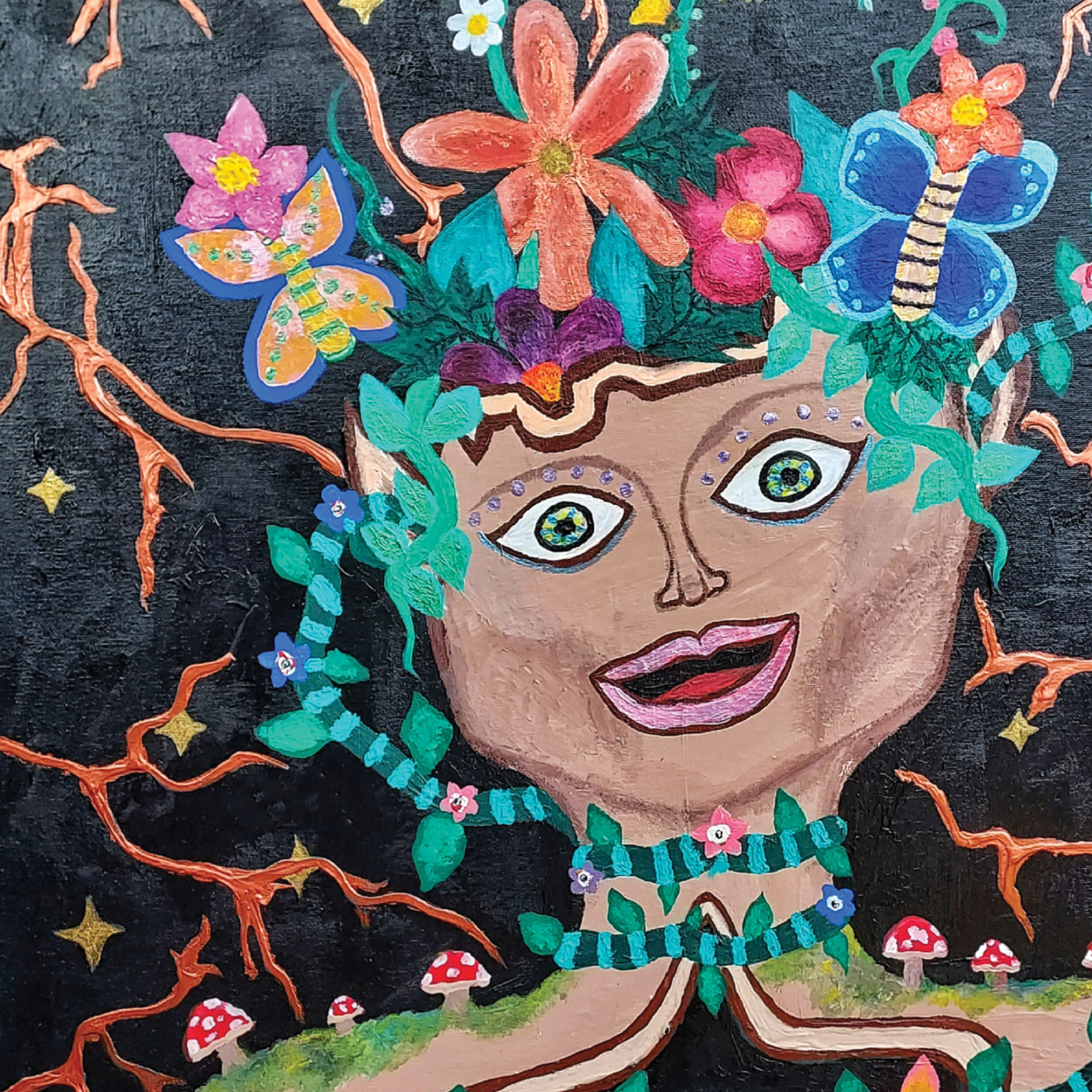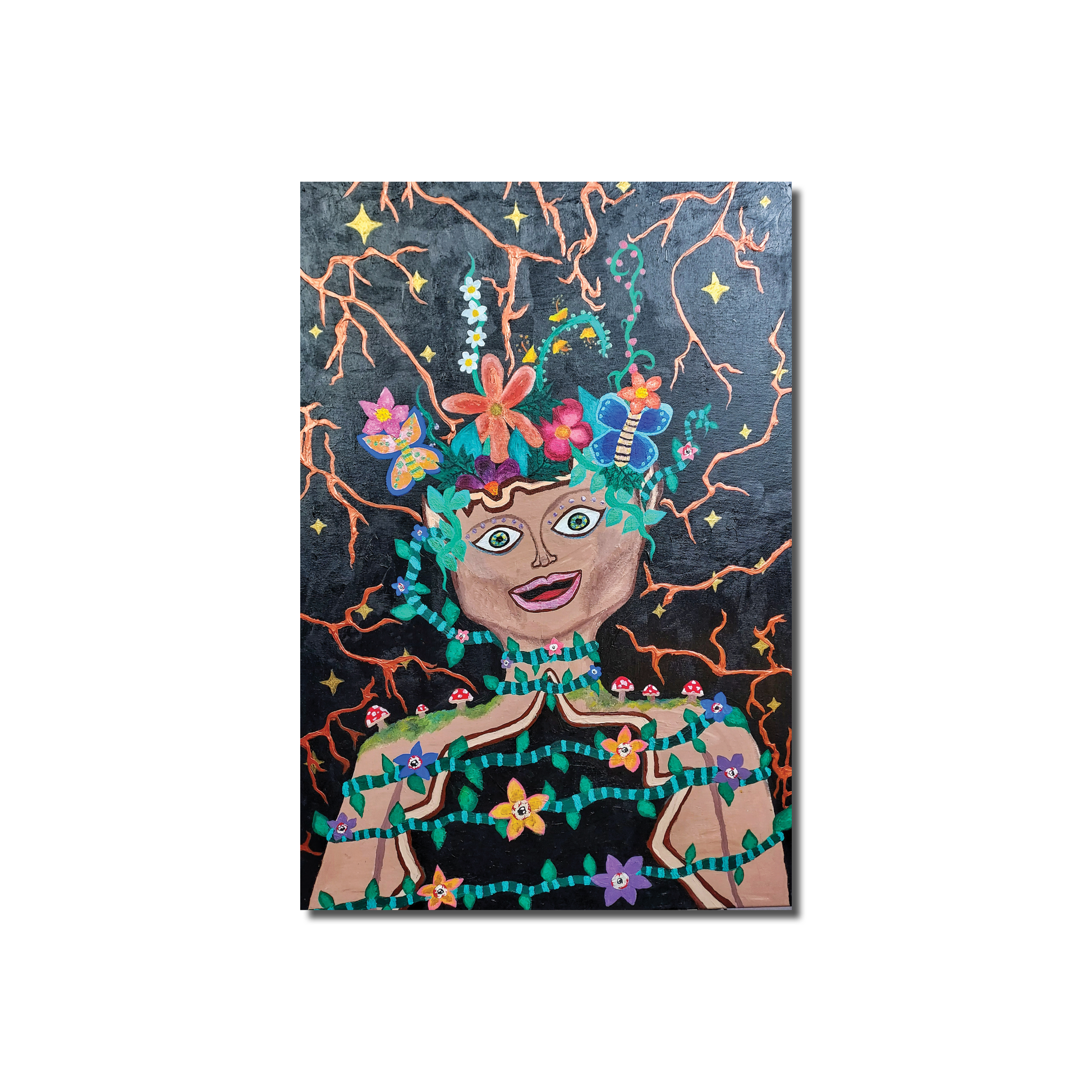 This piece represents what keeps a person together in times of darkness, chaos and emptiness. In order to grow and create a world where it embodies the ideal enlightenment, satisfaction and higher being of oneself. Transcending into a period of holding things together in order to grow and create what we have been suppressing during those dark times.